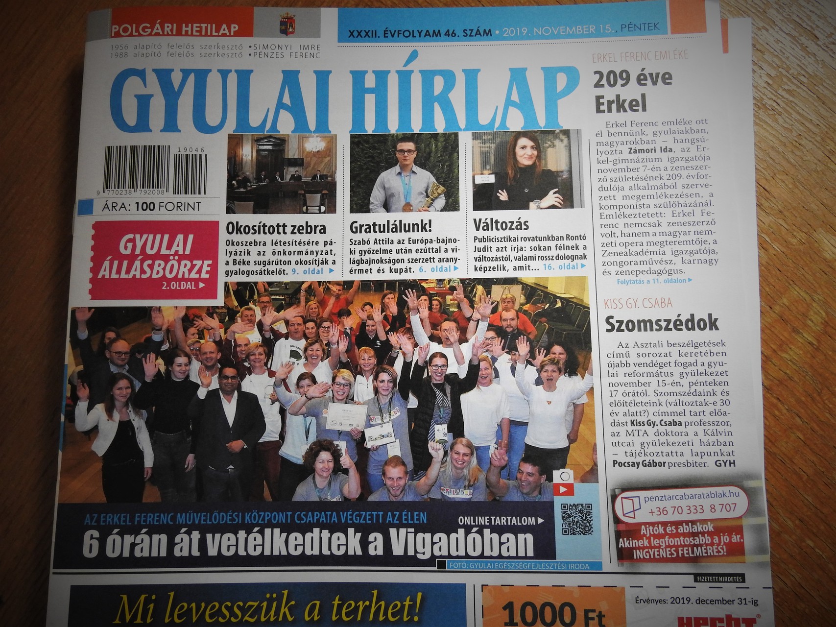 Itt a legfrissebb Gyulai Hírlap! Okoszebra! Szabó Attila vb-aranya! 6 órás vetélkedő!