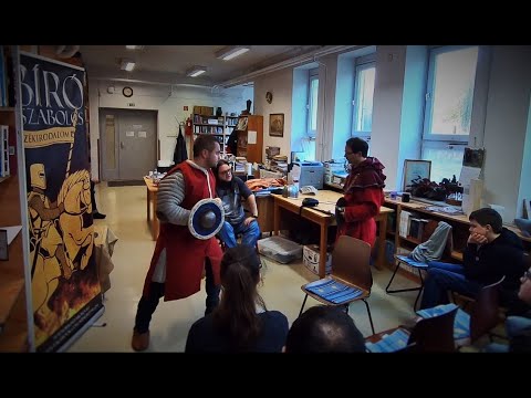 Az előadás vége felé megtudtuk, hogyan csalták tőrbe – pontosabban inkább egy szorosba – egy hadjárat során I. Károly seregét, és arra is fény derült, miként küzdött egy-egy csatában a középkor embere.