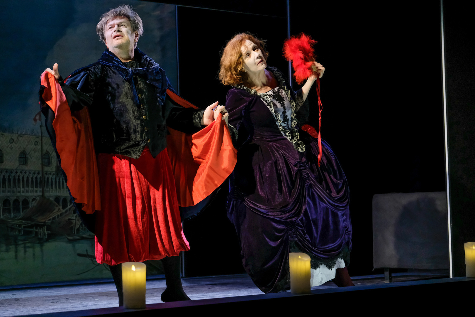 A történetet, amely mögött felderengett a kék tenger, az alkony, Velence látképe, a barokk angyalka, aki Velázquez festményén tükröt tart a meztelen istennő elé, a hasznos és ízléses színpadkép (díszlettervező: Cziegler Balázs), a zseniális színészi alakítások (a már említetteken kívül: Valerie – Takács Katalin, Ian – Gyabronka József, angyal – Brasch Bence) és Deák Krisztina rendezői profizmusa mentette meg a kliséktől. Bár a Goldoni-darab próbájának jelenete szükségtelennek tűnt a produkció elején, kissé hosszúnak is, miután ezt korhű kosztümökben (jelmeztervező: Szakács Györgyi) ki is bontották a folytatásban, megértettük, nem is volt rossz döntést. Ismét megerősödött bennünk annak sejtése, hogy a szerelem örök, és hogy kellenek a filmes elemek a teátrumokba.