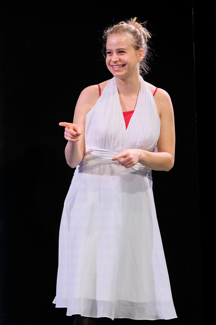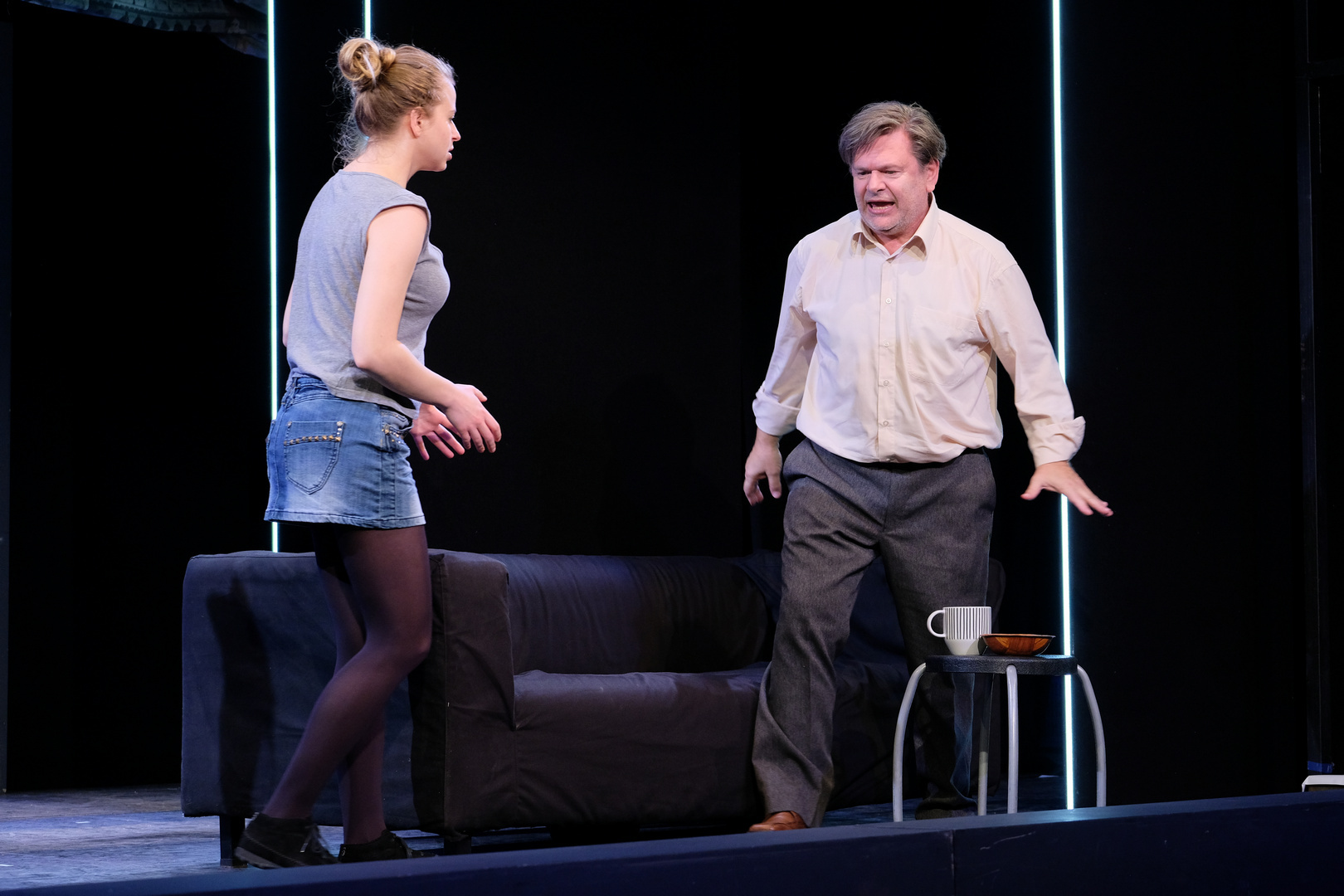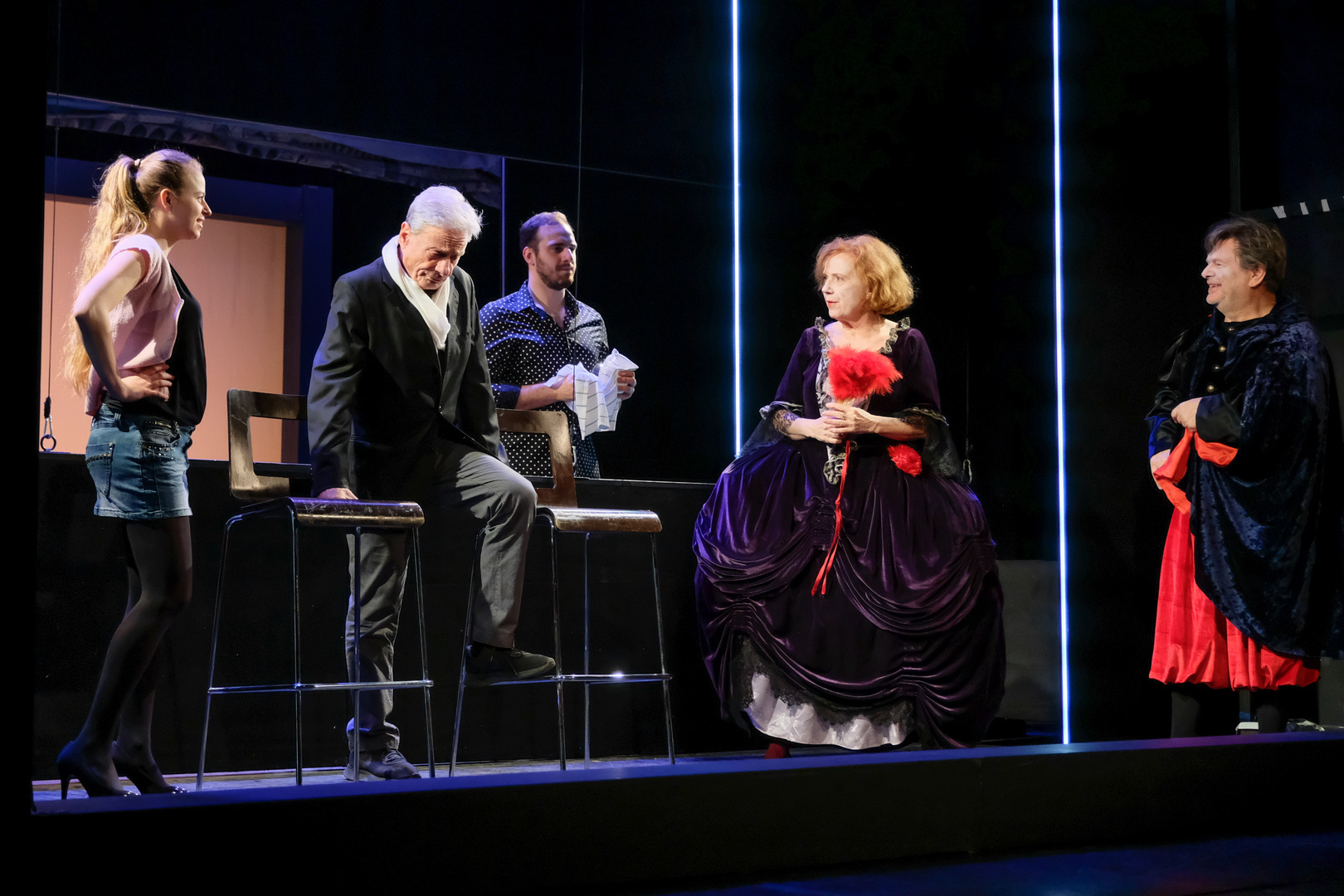 Márpedig Hanif Kureishi Vénusza esetében erről van szó. Az eredeti szövegkönyvben, amely 2007-ben Peter O'Toole-nak köszönhetően hozott egy Oscar-díjra jelölést az angol filmnek (rendező: Roger Michell), nem túl sok van, sőt a giccs határait súrolja, de talán át is lépi. Ám ezen is lehet vitatkozni. Ugyanis nem biztos, hogy mindenki a mély filozófiai tartalmak megfogalmazását várja el a művészettől, de izgalmasnak tartja azt, amit Kureishi elmesél: a férfi, legyen bár húszéves vagy nyolcvan, dagadó izomzatú vagy prosztatás, nem az eszére hallgat, nem is a szívére, hanem mindig csak a farkára. Ezt szó szerint mondják ki az adaptációban. Maurice (Bálint András) belehabarodik a fiatal, de ordenáré vidéki lányba, Jessie-be (László Lili), és még egyszer, de utoljára az életben megadja magának azt, amiről azt hiszi, jár neki: szerelmes lesz. Vénuszba. A nőbe.