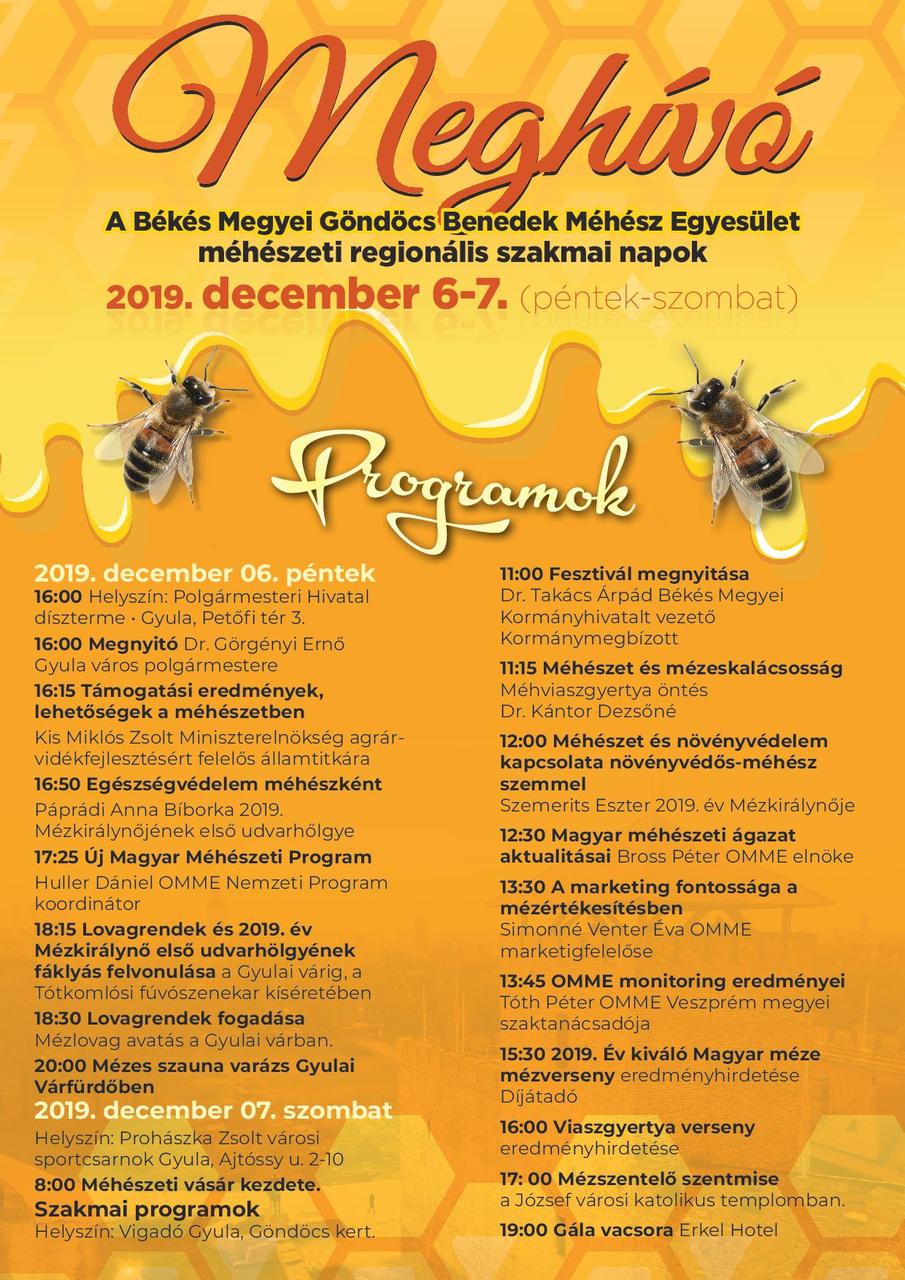 A rendezvényt pénteken 16 órakor Görgényi Ernő polgármester nyitja meg a városháza dísztermében, majd Kis Miklós Zsolt agrárvidékfejlesztésért felelős államtitkár számol be a méhészeket érintő pályázati lehetőségekről, valamint a Nemzeti Méhészeti Program 2019-2020-ra vonatkozó információiról.