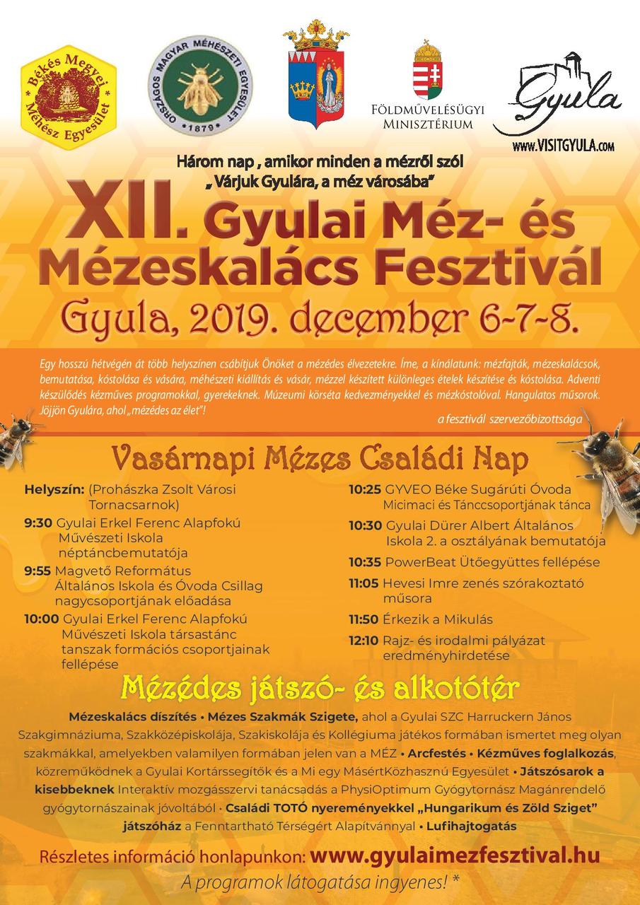 A szombati napon már 8 órakor kezdetét veszi a méhészeti vásár a Prohászka Zsolt Városi Tornacsarnokban, majd a szakmai programoké lesz a főszerep: a fesztivált Takács Árpád kormánymegbízott nyitja meg 11 órakor, a délelőtt folyamán pedig szó lesz a méhészet aktualitásairól, a mézértékesítés marketingjéről, a méhészet és a növényvédelem kapcsolatáról pedig Szemerits Eszter, 2019 mézkirálynője fog beszélni.