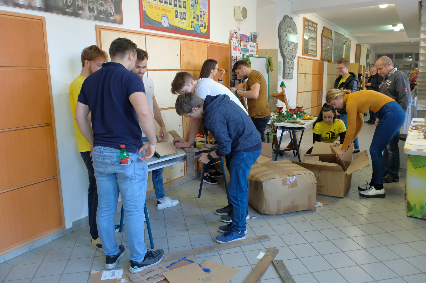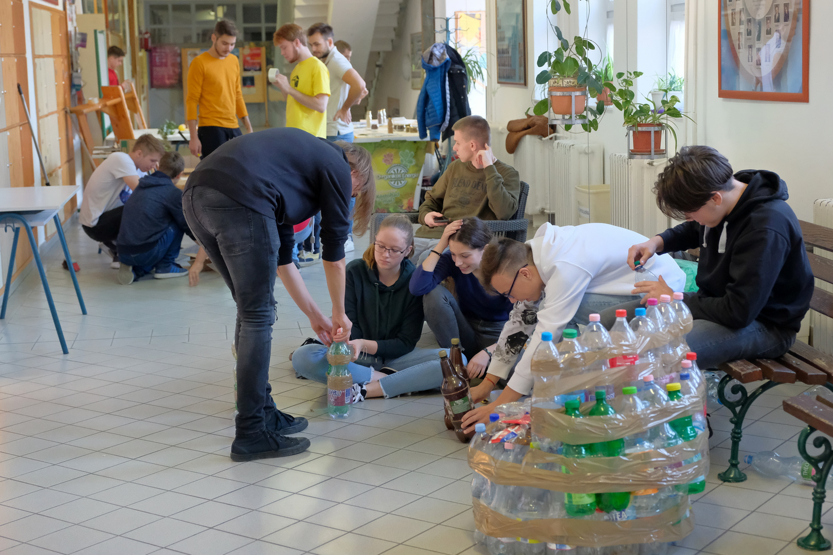 A tanulóknak szónok-, váltó- és salátakészítő versenyt is szerveztek, utóbbinál az adalékmentességet helyezték a középpontba. A rendezvényen szemétszobrokat is kiállítottak, idén újrahasznosítható alapanyagokat kellett használniuk a nevezőknek – ismertette a pedagógus.