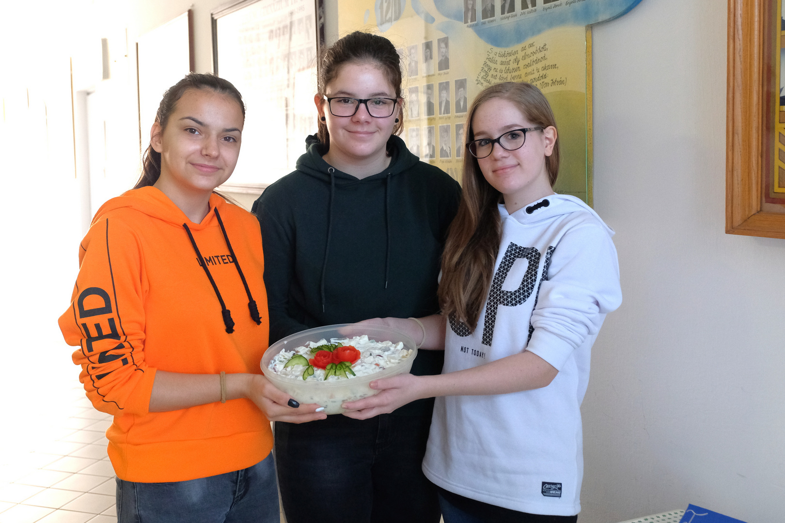 Papp Mónika arról is beszámolt, hogy az iskolában egészséges ételeket és italokat kóstolhattak a fiatalok, és – ahogy minden évben – a versenyre benevezett salátákat is elfogyaszthatták.