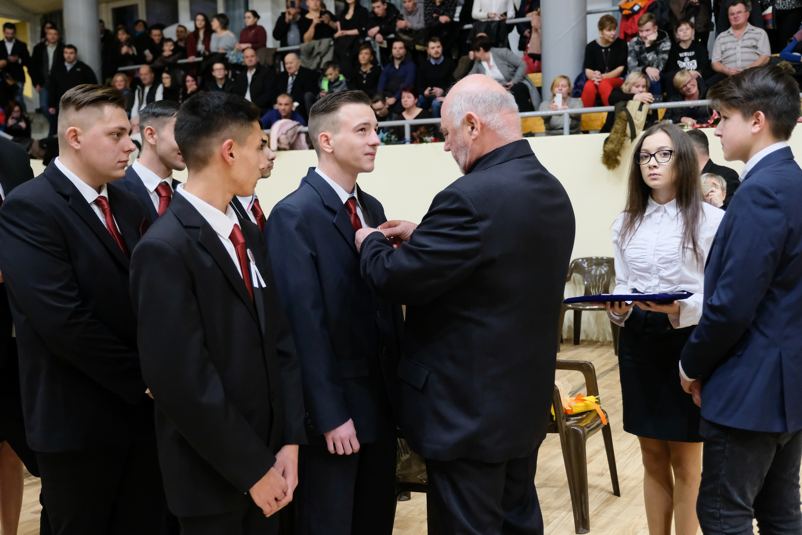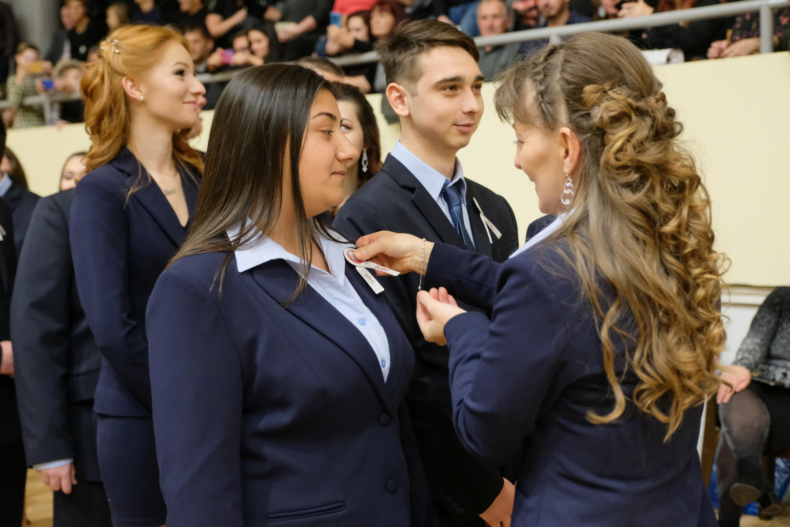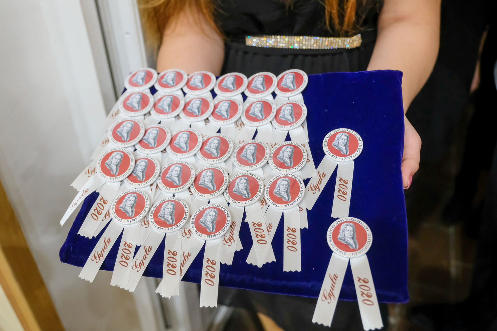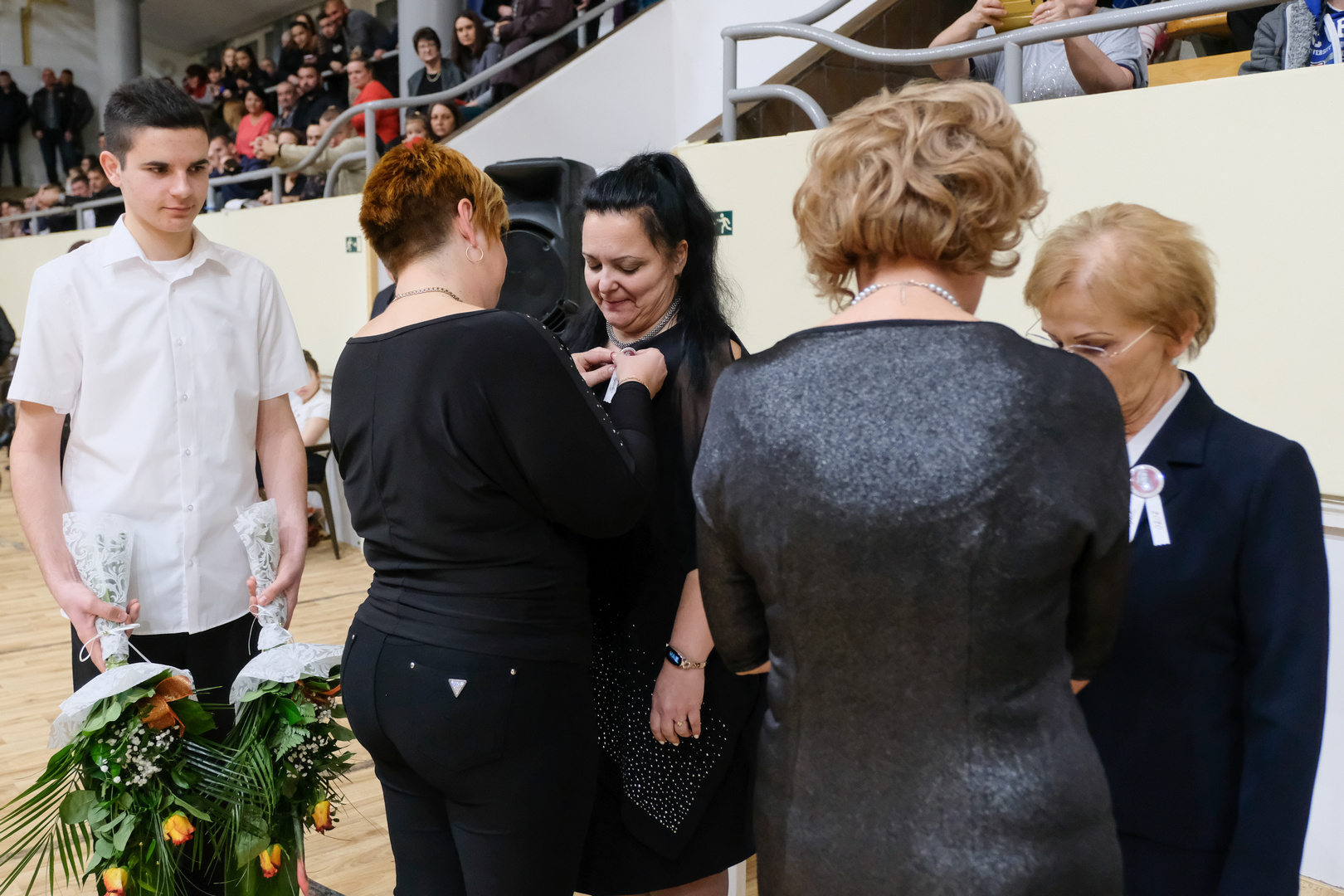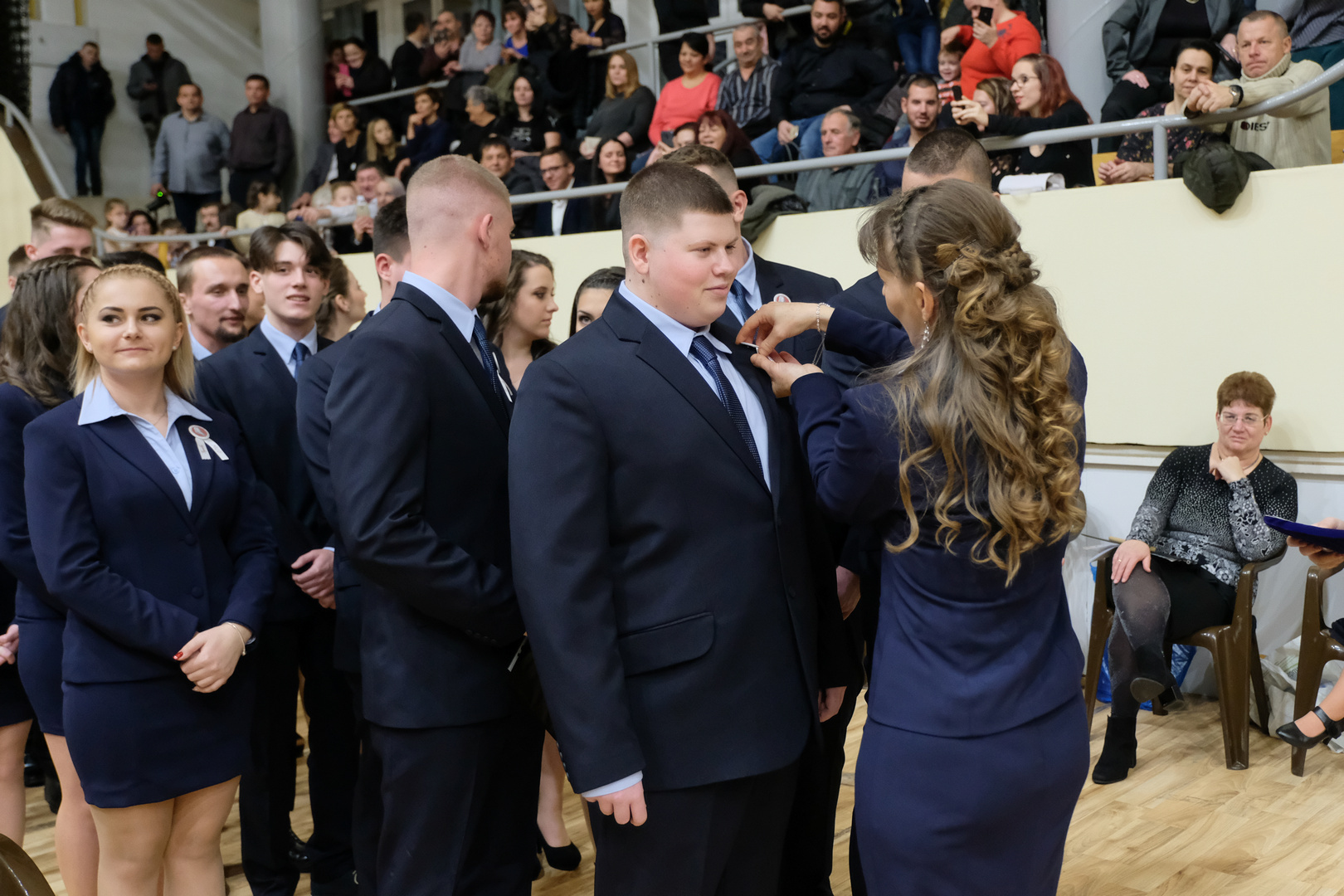 A köszöntő után az első szalagokat Czeglédiné Szappanos Anita és Kovács Zsuzsanna, a szakképzési centrum főigazgatója kapták meg, majd ketten feltűzték a szalagokat a száznegyvennégy végzősre is.