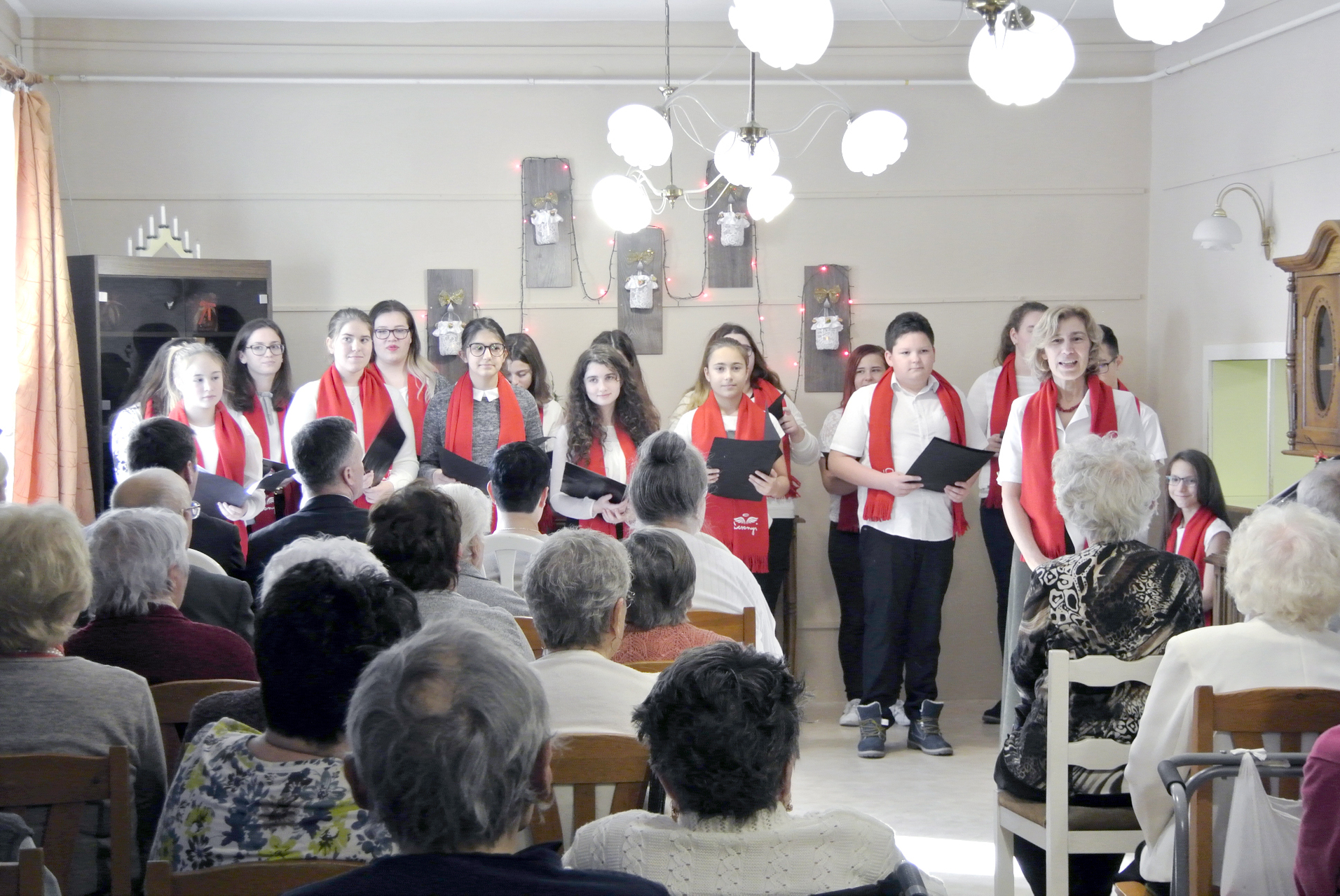 Az ünnepi hangulatot Nóvé Lajosné szavalata nyitotta meg, majd a Karácsonyi János Katolikus általános iskola énekkara következett, amely karácsonyi dalokkal szórakoztatta a megjelenteket. Az iskola tanulói verssel és gitárzenével is készültek az idősek számára, de egy szívmelengető Fekete István novellát is hallhattak az ellátottak.