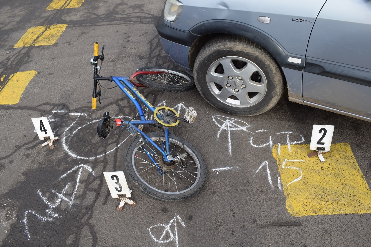 Békéscsabán, a Lencsési úton reggel fél nyolc körül egy személyautó és kerékpárossal ütközött össze. A biciklis nyolc napon túl gyógyuló csonttörést szenvedett.