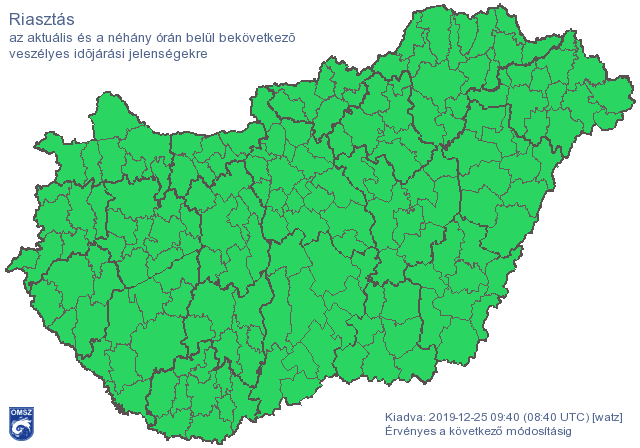 Kritériumok szerinti veszélyes időjárási jelenség nem valószínű – írja a met.hu.