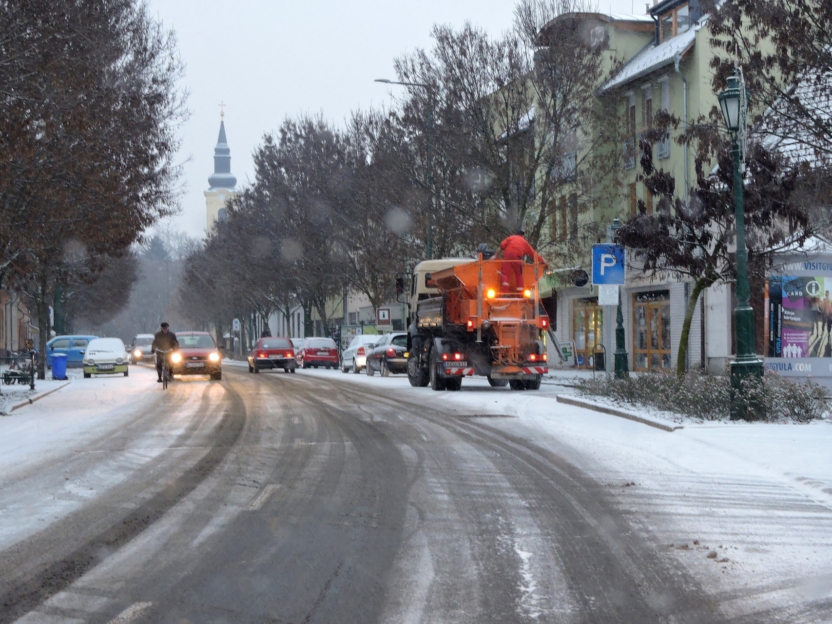 – Nemcsak a hóesésben, de a jegesedés esetén is azonnal indulnak a munkatársaink. Két sószóró teherautónk van, ezekkel tudunk dolgozni és igyekszünk bejárni az összes gyulai utcát, de természetes, hogy a nagyobb forgalmú utakkal kezdjük a takarítást – mondta el a szakember.