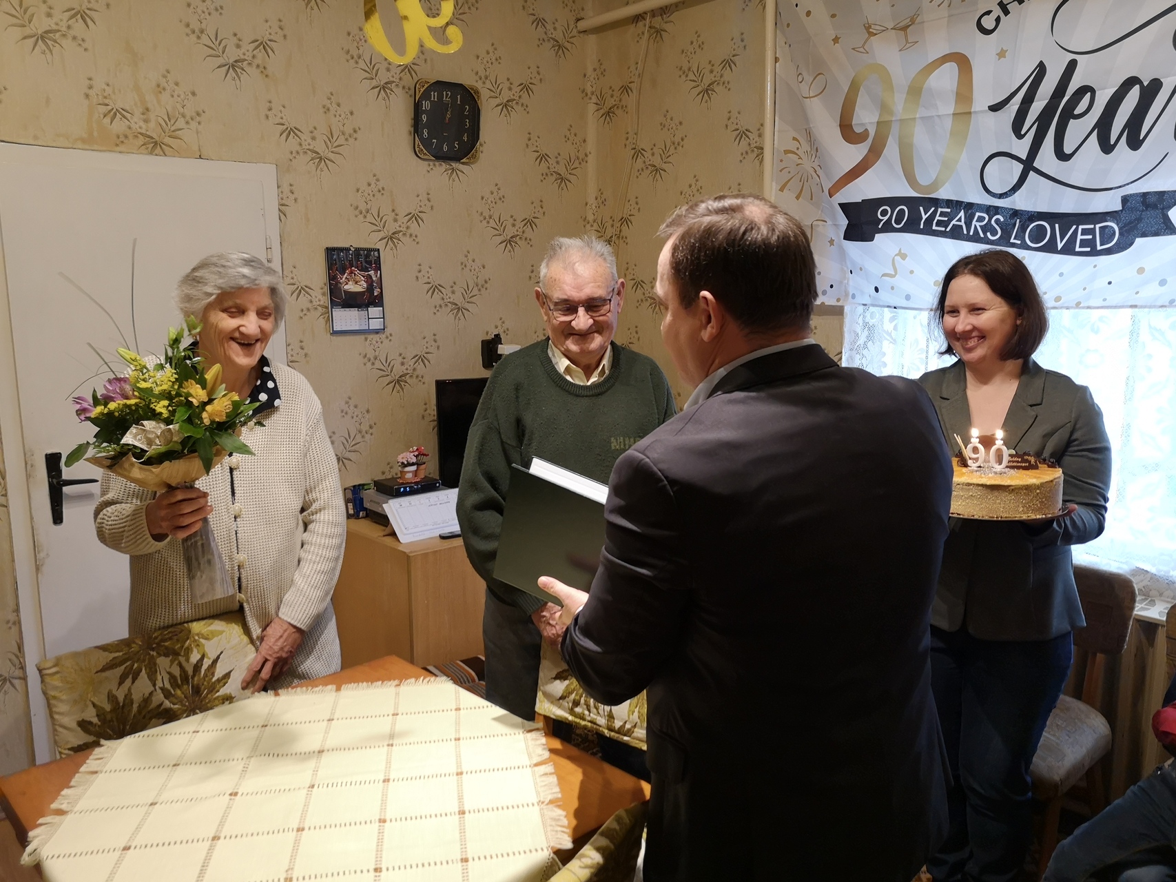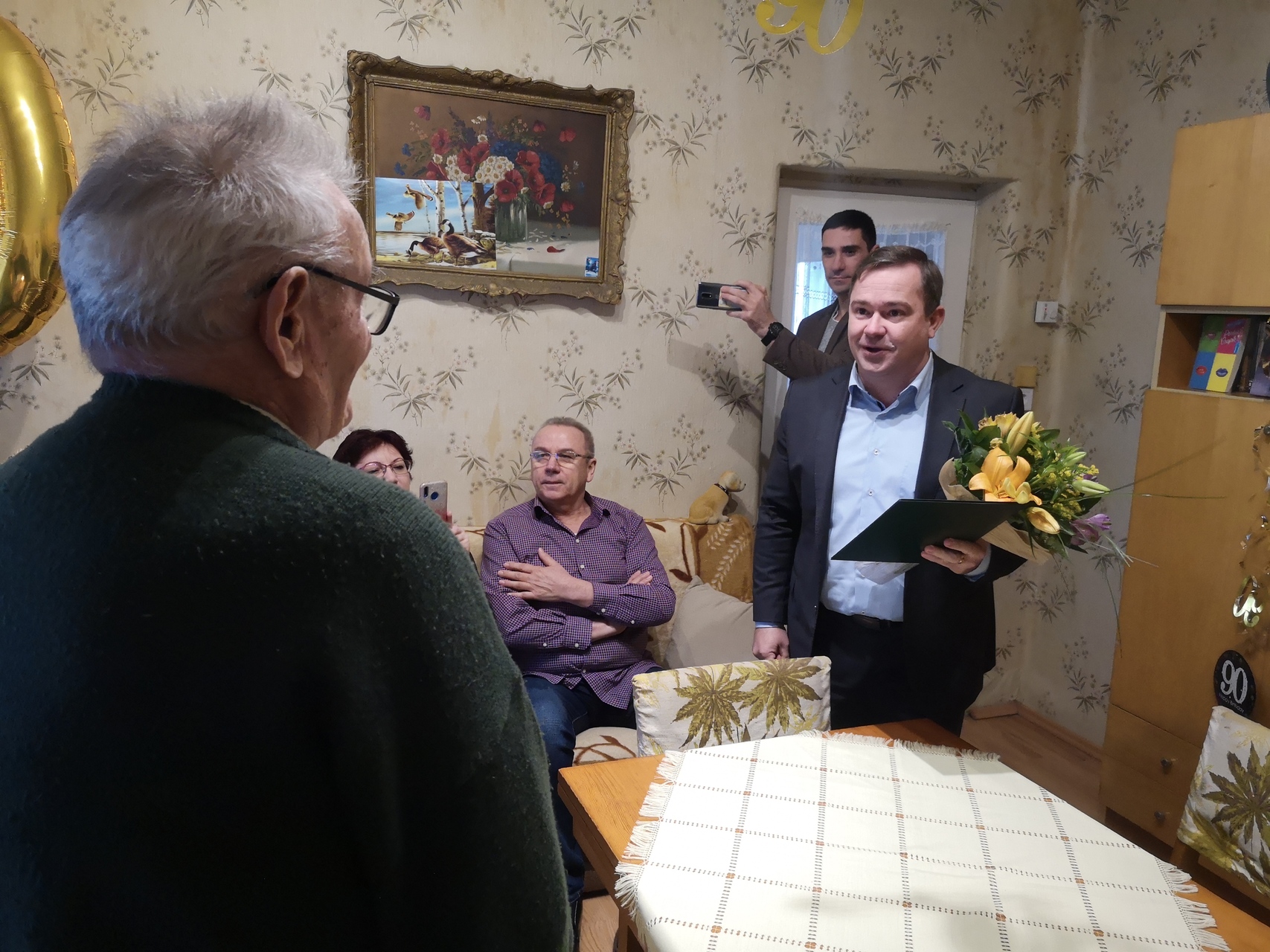 Botás Györgyöt köszöntötte kilencvenedik születésnapján a gyulai városvezetés. A helyi önkormányzat képviseletében Kónya István alpolgármester és Tímár Andrea aljegyző tortát, virágot és a miniszterelnök által aláírt emléklapot vitt Gyuri bácsinak, aki családja körében ünnepelt.