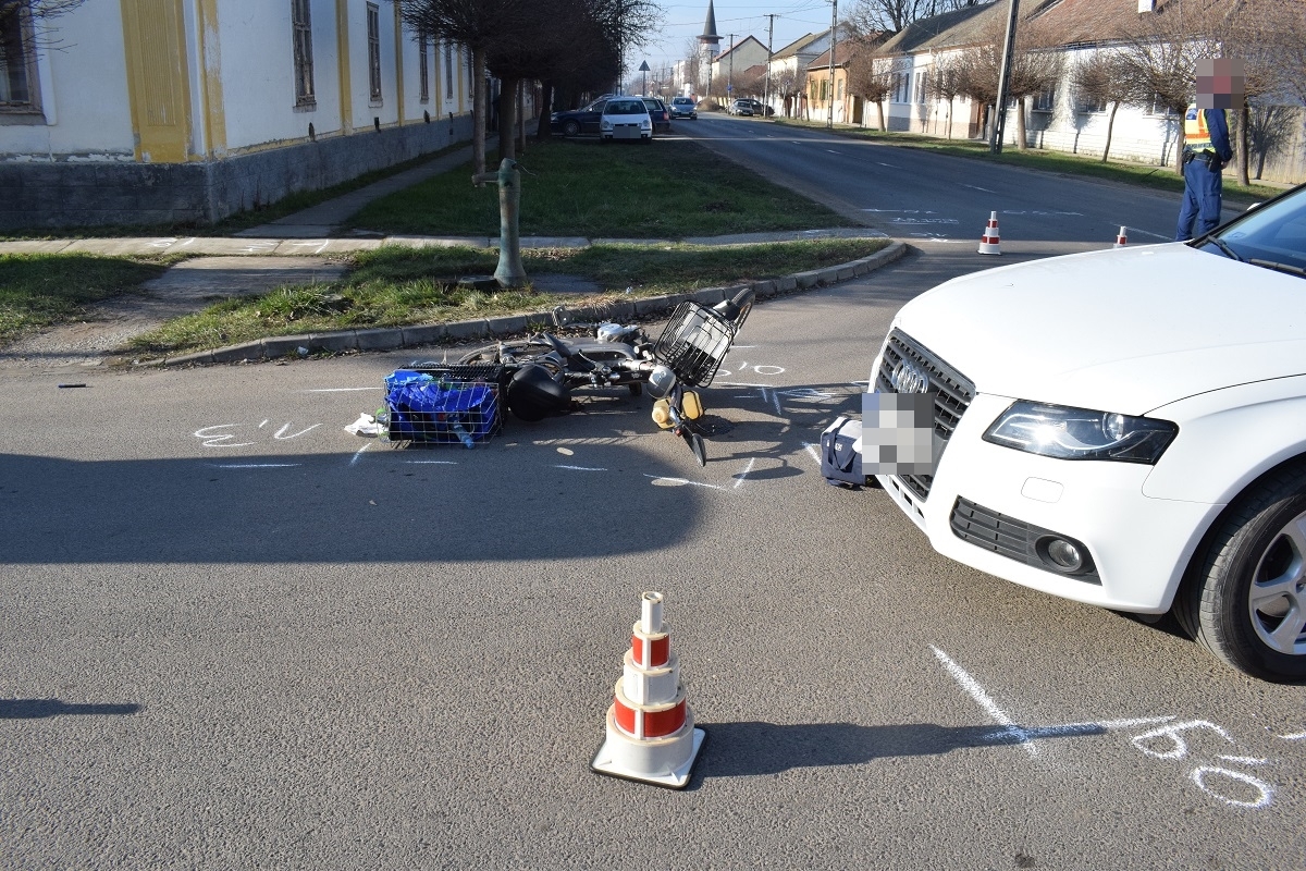 Szarvason, a Hunyadi János utca és a Vasút utca találkozásánál egy személygépkocsi vezetője nem adott elsőbbséget egy robbanómotoros kerékpárral közlekedő férfinek és összeütköztek. A férfi könnyebben megsérült.
