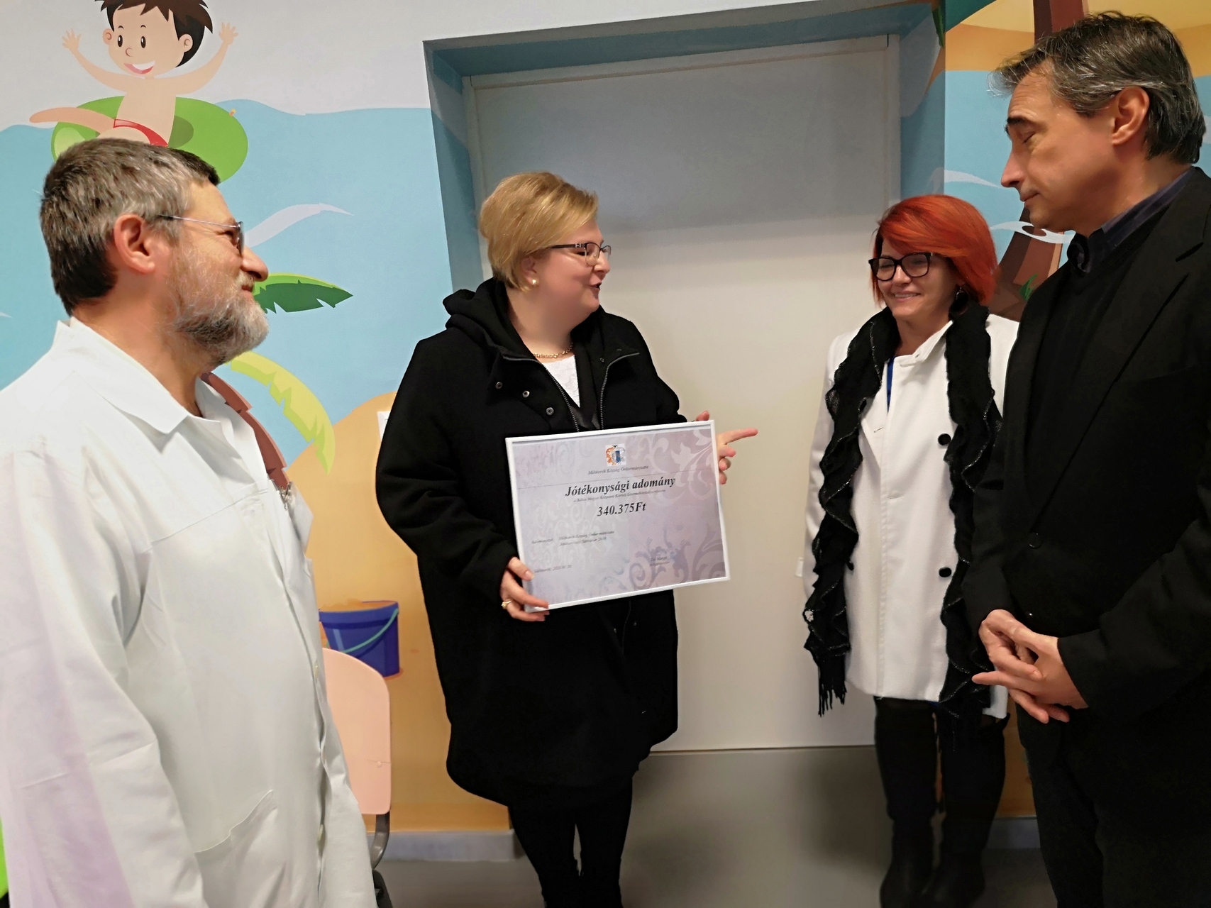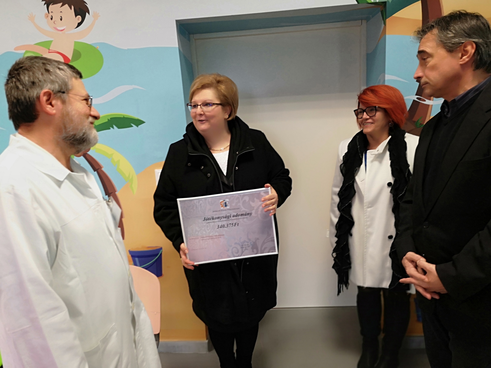 Becsei László főigazgató főorvos a programon kiemelte: hálásak a támogatásért, hiszen az ilyen akcióknak köszönhetően juthatnak azokhoz a gyerekek kényelmét szolgáló kisebb és nagyobb tárgyakhoz, amelyekkel talán a gyógyulásuk napjai jobb hangulatban telhetnek.