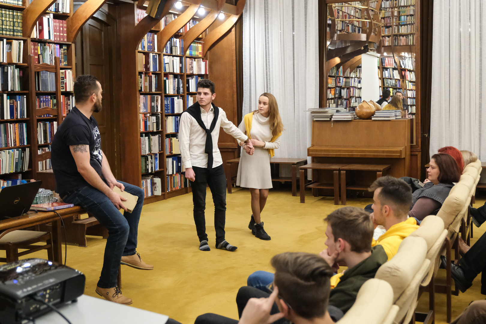 Az est az Egy-két szín, avagy hogyan értelmezzük félre az Ember Tragédiáját című színházi etűddel kezdődött, amelyet Nagy-Laczkó Balázs írt és rendezett. A rövid darabban Szabó Viktória, Baranyai Tamás, Berndt Richárd és Jobbágy Zoltán testesítették meg Madách Imre tragédiájának főbb szereplőit.