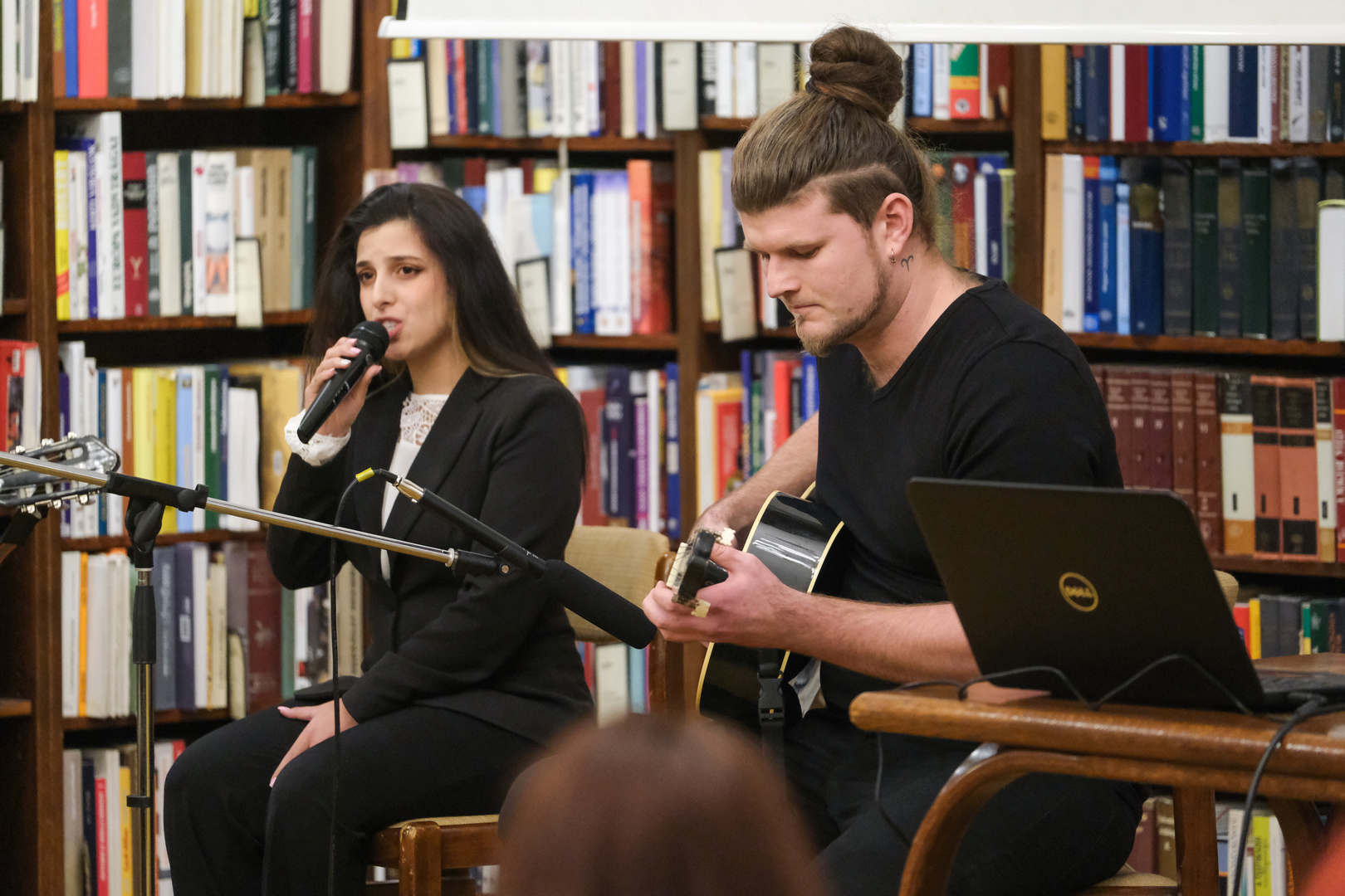 Dávid Péter ismeretterjesztése után a Kóra Katalin Bianka, Galambos Krisztián és Medve Dániel alkotta Kóra-trió zenés előadása következett. A két gitár ritmusos, szinte transzba ejtő játéka mellett hallgathatta végig a közönség Az ember tragédiájának történetét röviden, de annál hatásosabban.