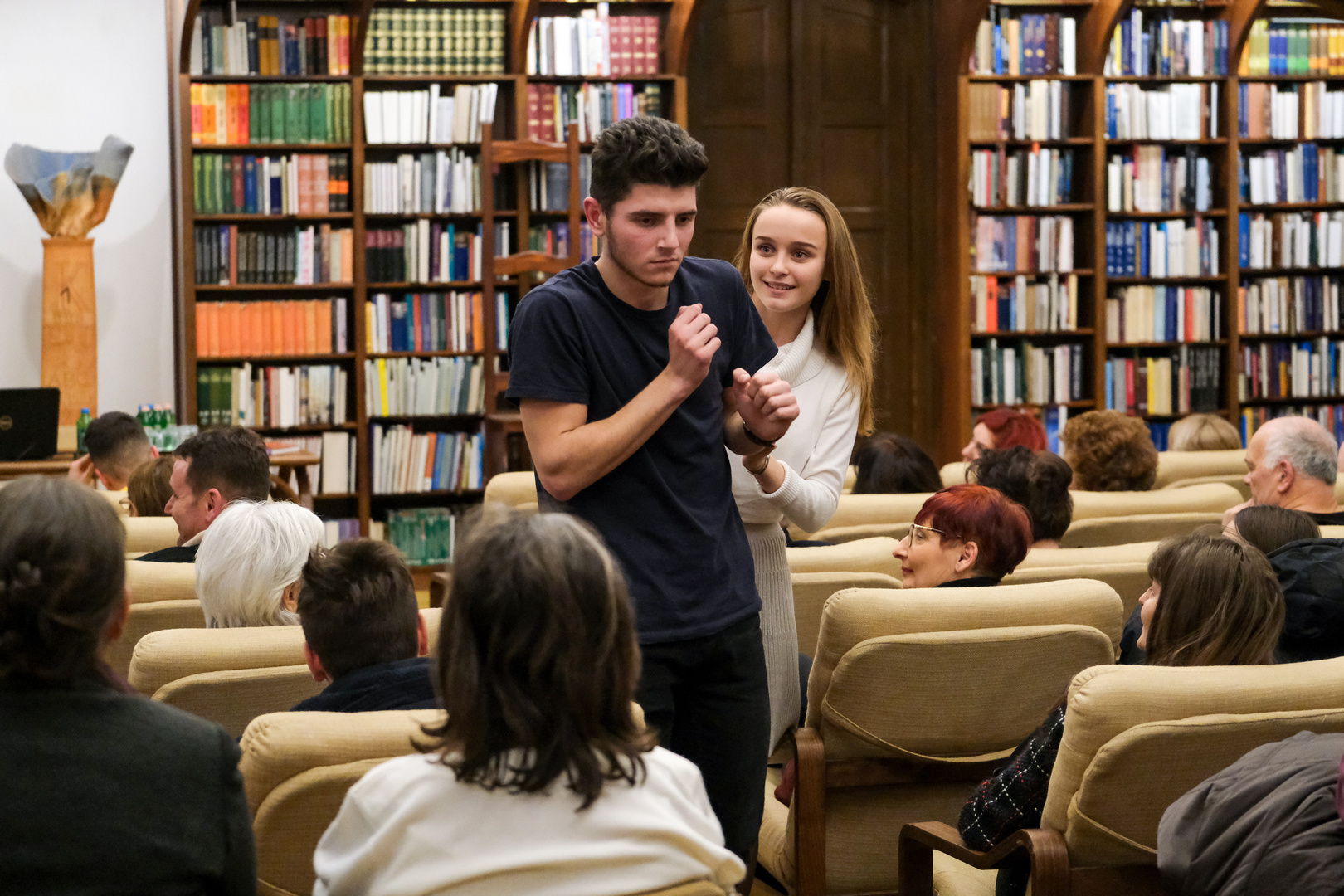 Az est Dávid Péter, a Karácsonyi János gimnázium magyar–történelem szakos tanárának Tragédia a zűrben című előadásával folytatódott, amelyből megtudhattuk, hogy Madách tragédiájának a tizenharmadik, Az űr című színe a legfontosabb, a kulcs, hogy megérthessük az egész történetet.