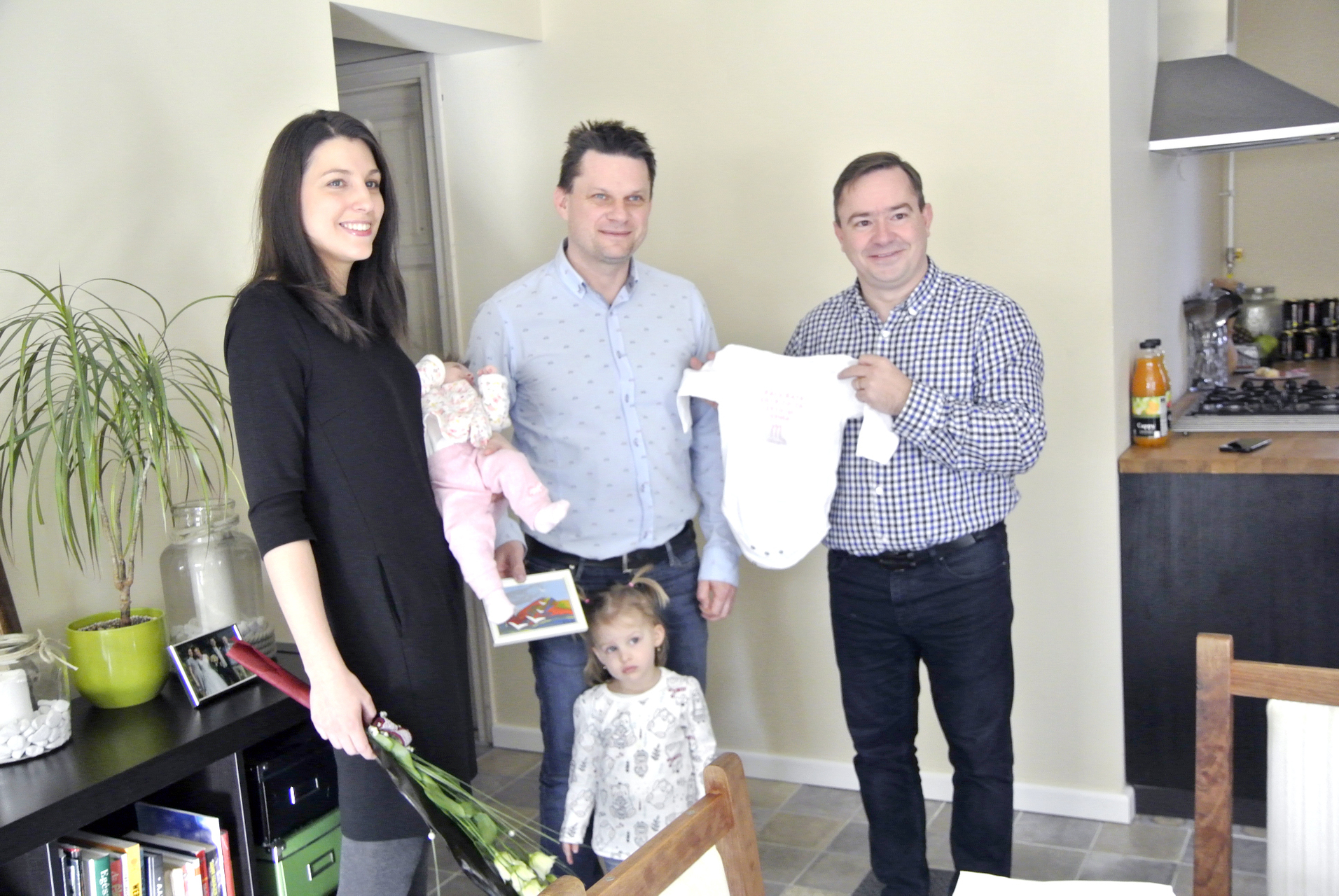 Rácz Katát köszöntötte a gyulai Babaruha program keretében Kónya István alpolgármester január 24-én. A képviselő egy Póka György-festménnyel, virággal és névre szóló babaruhával ajándékozta meg a családot.