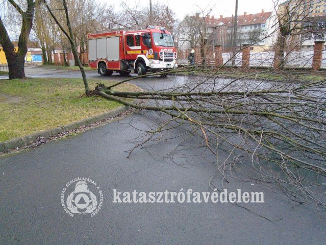 A Békés Megyei Katasztrófavédelmi Igazgatóság honlapján arról tájékoztatott, hogy műveletirányítási főügyeletére összesen tizenöt segélykérés érkezett kedden. A káreseményekhez riasztott tűzoltó egységek az esetek túlnyomó részében a viharos időjárás miatt megdőlt fákat, letört ágakat távolítottak el.