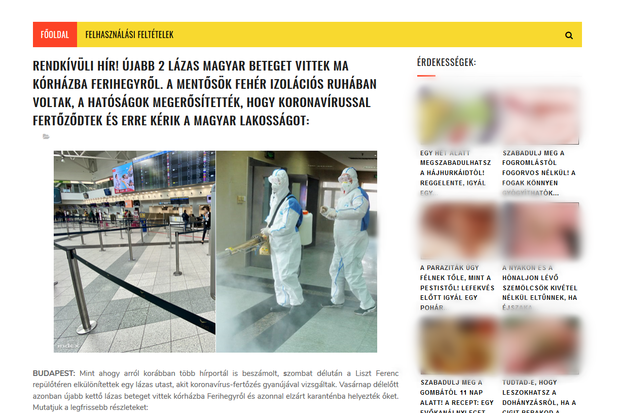 Az internetes oldalakon több olyan hírt jelentettek meg valótlanul, amelyek azt állították, hogy Magyarországon több ember fertőződött meg a kínai eredetű koronavírussal, továbbá több fővárosi pályaudvaron is emberek estek össze és haltak meg a fertőzés következtében.