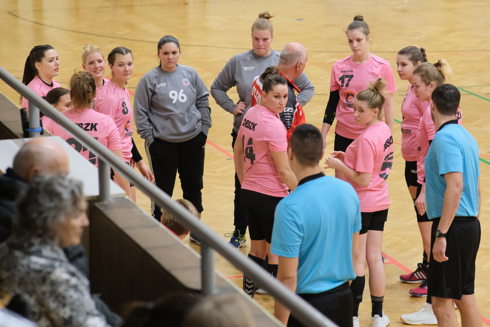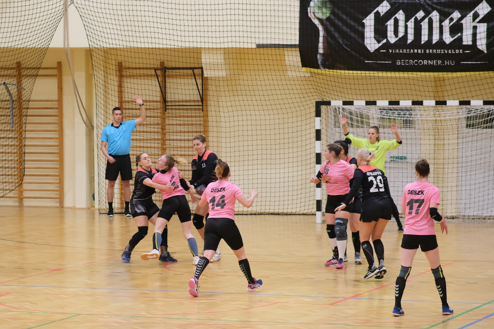 A bajnokság első tavaszi derbije vendég vezetéssel kezdődött, ám a vezető találat sem ment könnyen a deszki támadósornak. Antal Xénia bravúrral hárította a vendégek hétméteresét – a kipattanót igaz már sikerült értékesíteni – amely megadta a mérkőzés alaphangját. A higgadtan és ötletesen kézilabdázó hazai gárda a harmadik percre már 3-1-es előnyt csikart ki magának, amelyet folyamatosan tartani tudtak.