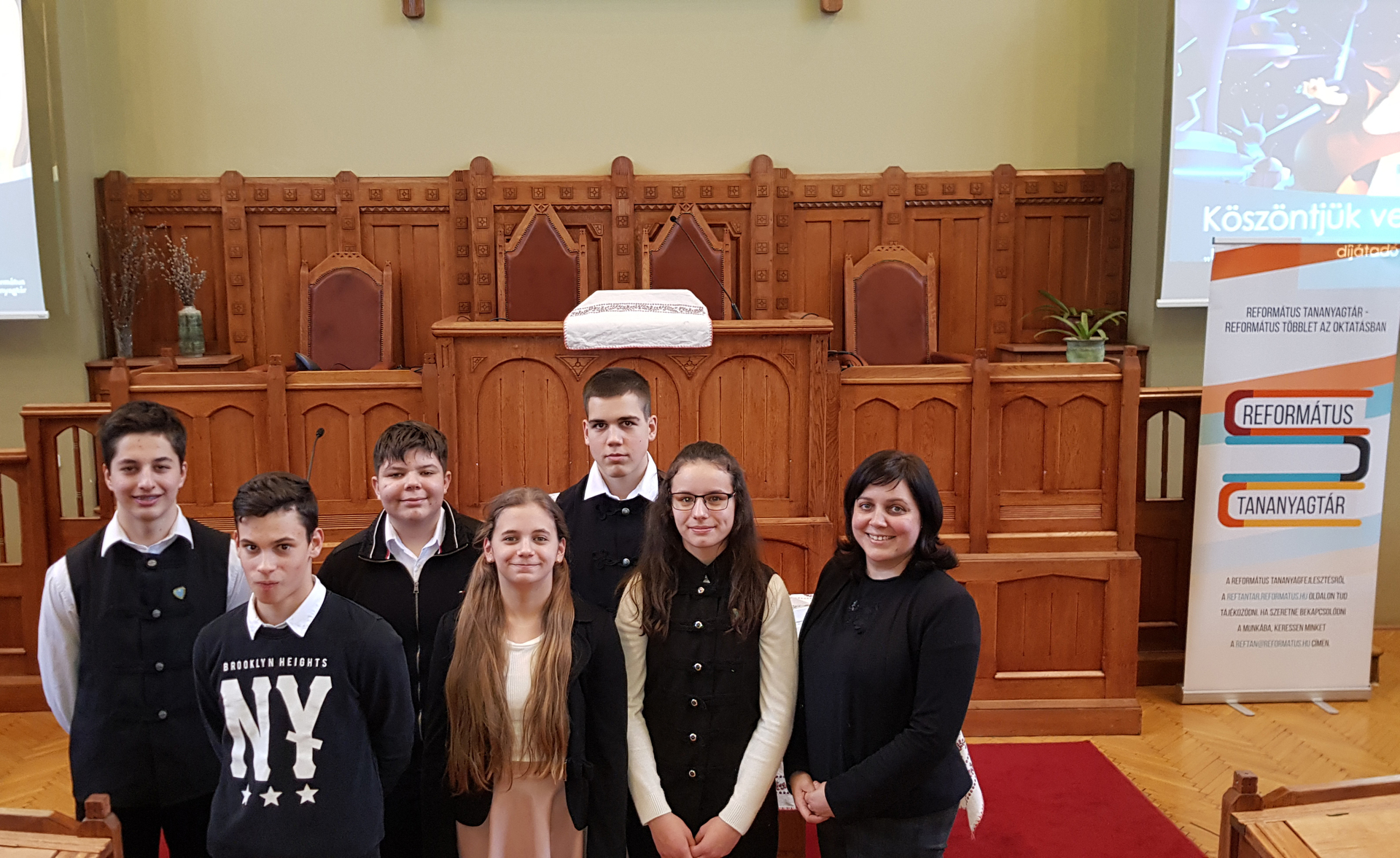 – Január 25-én Budapesten, a 110 éves zsinati székház üléstermében, ünnepélyes díjátadón történt az eredményhirdetés. Sok munkát fektettünk a versenybe, ezért reméltük, hogy nem vallunk szégyent, de azért az első helyezés mégis meglepett bennünket, hiszen 177 csapatot, köztük neves, nagy múltú intézményekét előztünk meg, méghozzá jelentős pontszámmal. A „(M)érték követők” csapat tagjai Baráth Salamon csapatkapitány – az ő feladata volt a csapatszintű feladatok adminisztrálása a játék során –, Lipcsei Emese, Látkóczki Lilla, Szabó Dániel, Schreyer József és Izsó Balázs voltak. Őket számos ajándékkal és fejenként egy-egy tablettel is jutalmazták. A diákokkal közösen adtunk hálát Istennek a felejthetetlen élményért és a kimagasló teljesítményért.