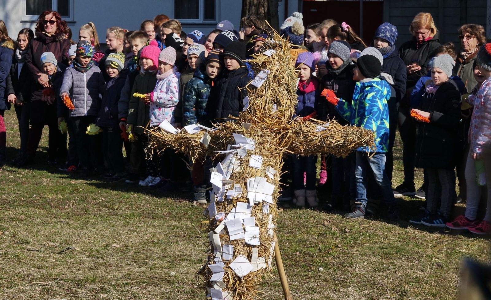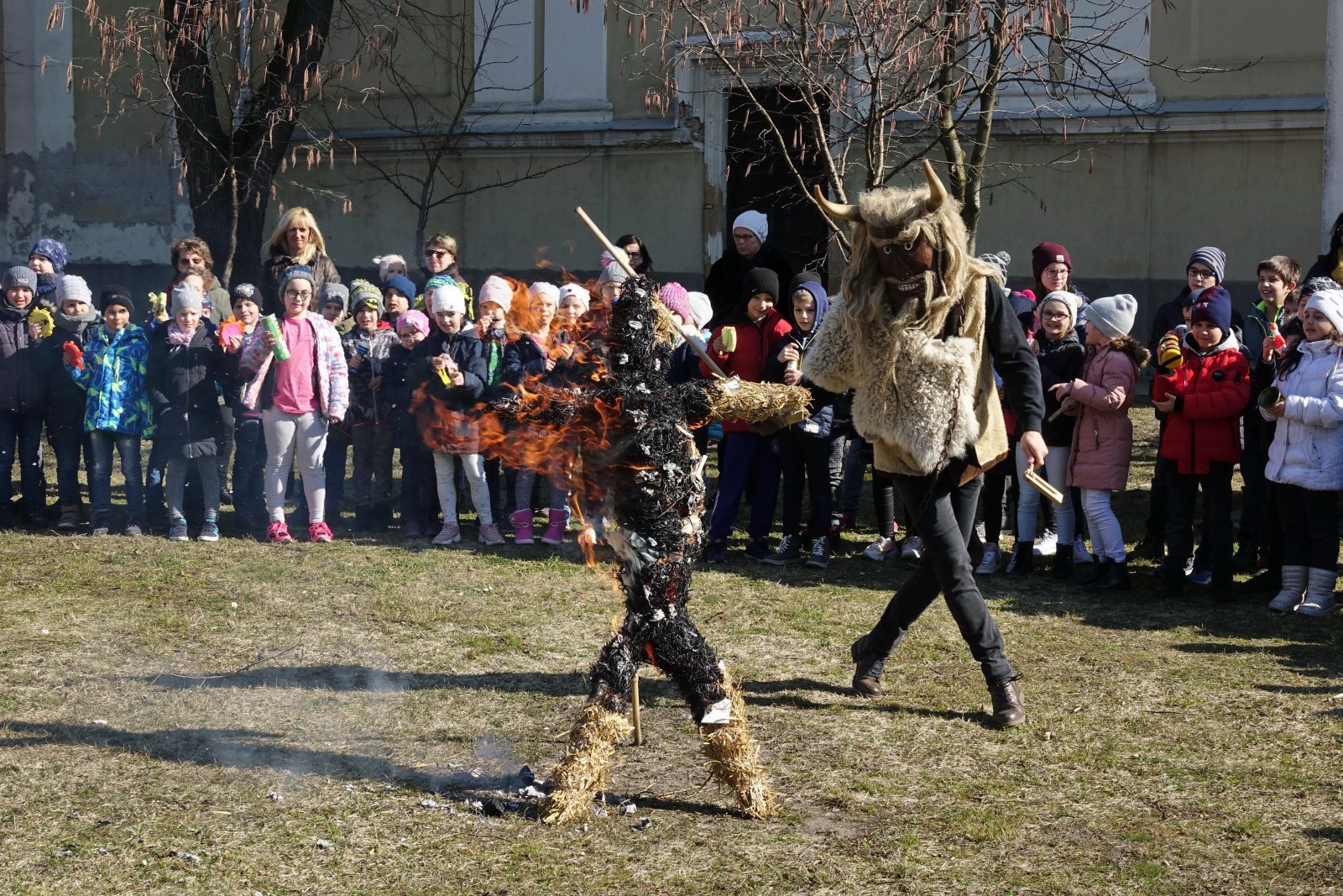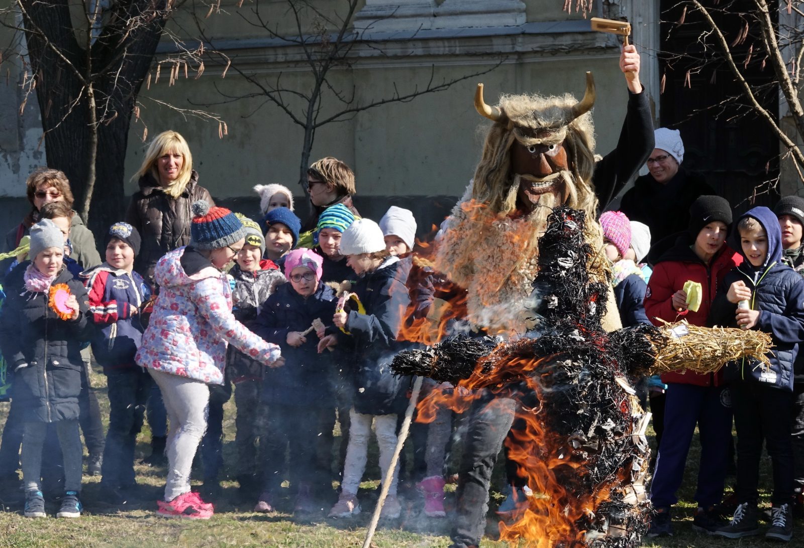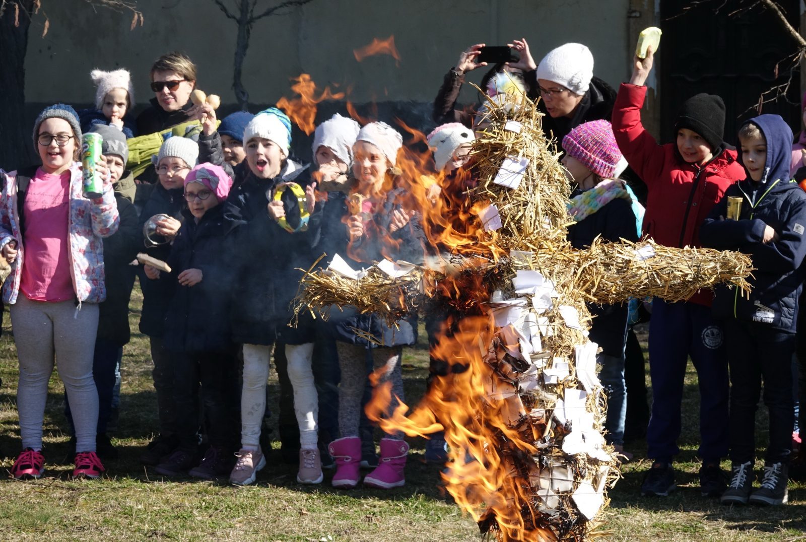 A télbúcsúztató szalmabáb égetés idén sem maradt el: a fiatalok kis papírokra rajzolták le és írták fel,mitől szeretnének megszabadulni, majd a báb szálai közé tűzték, és elégették azokat a tél hideg napjaival együtt.