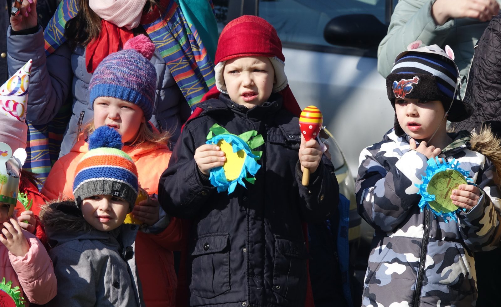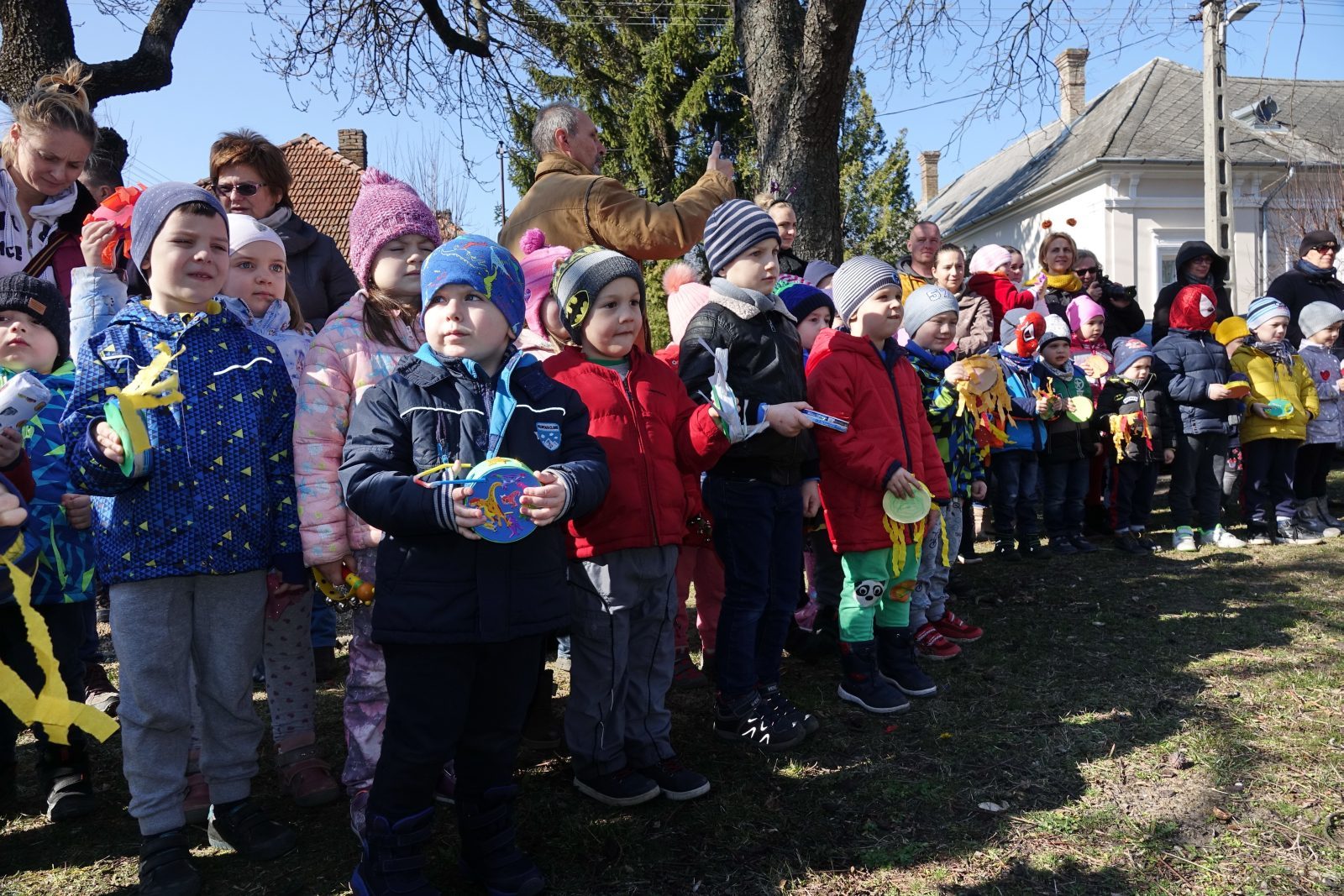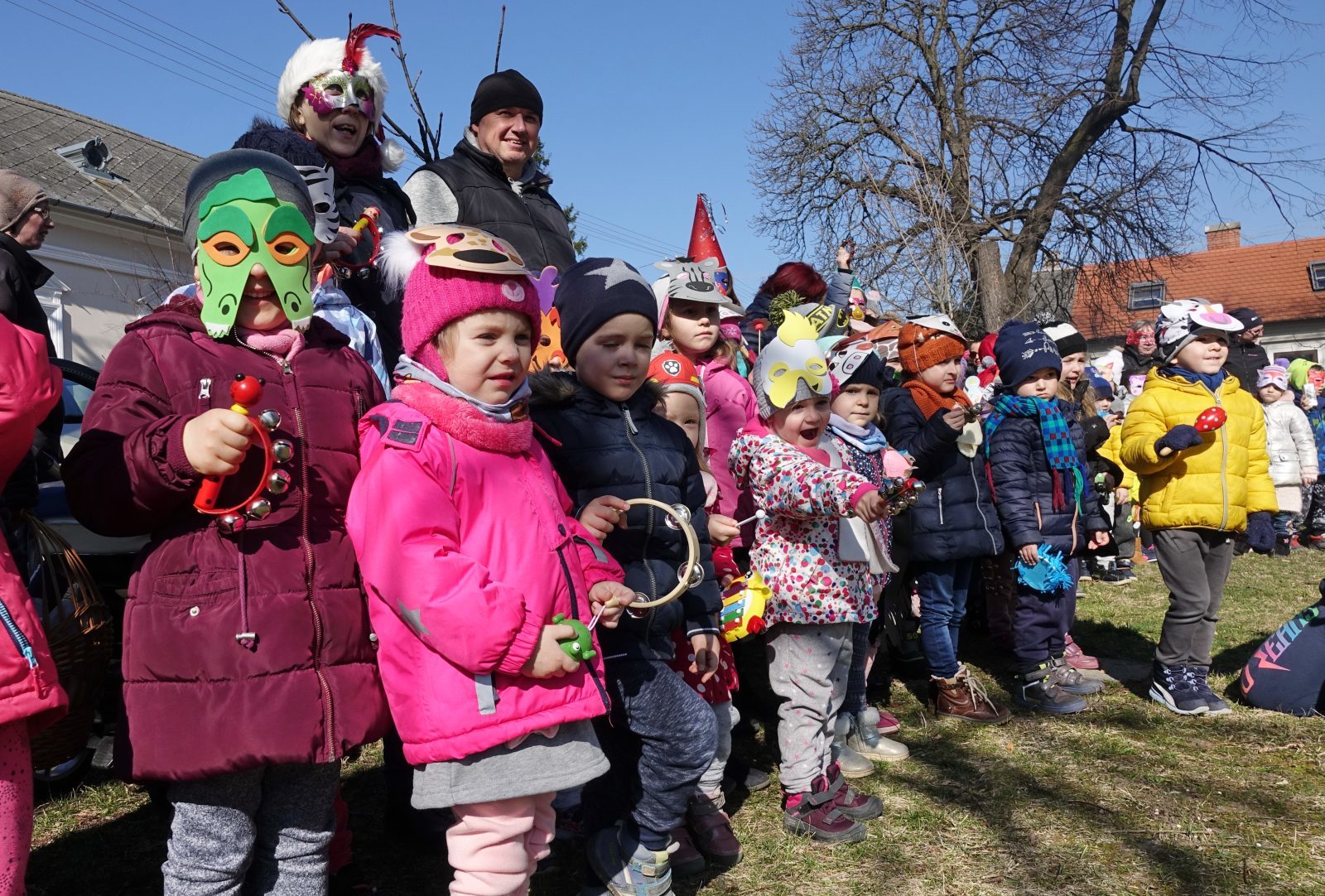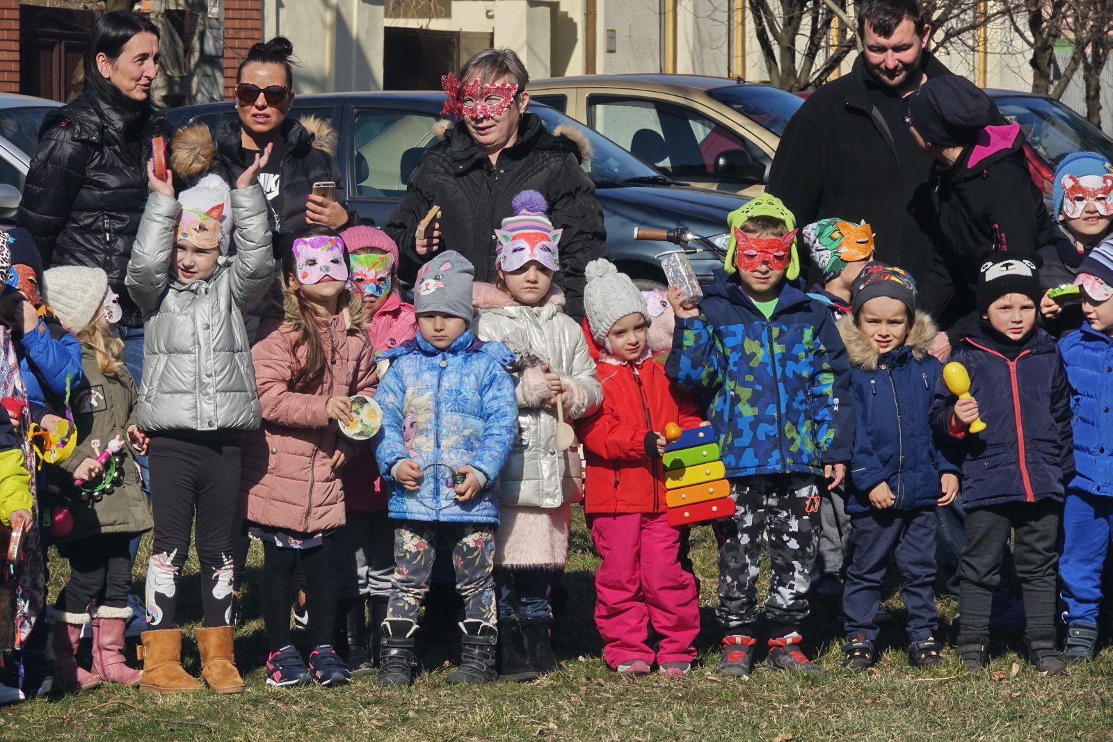 Ahogy a helyszínen az óvónéniktől megtudtuk: az óvodások a nagyobbakkal együtt készítették zajkeltő eszközeiket az eseményre. A lelkesebbek állatos maszkokat is festettek mellé és abba öltözve álcázták magukat a vidám programon.