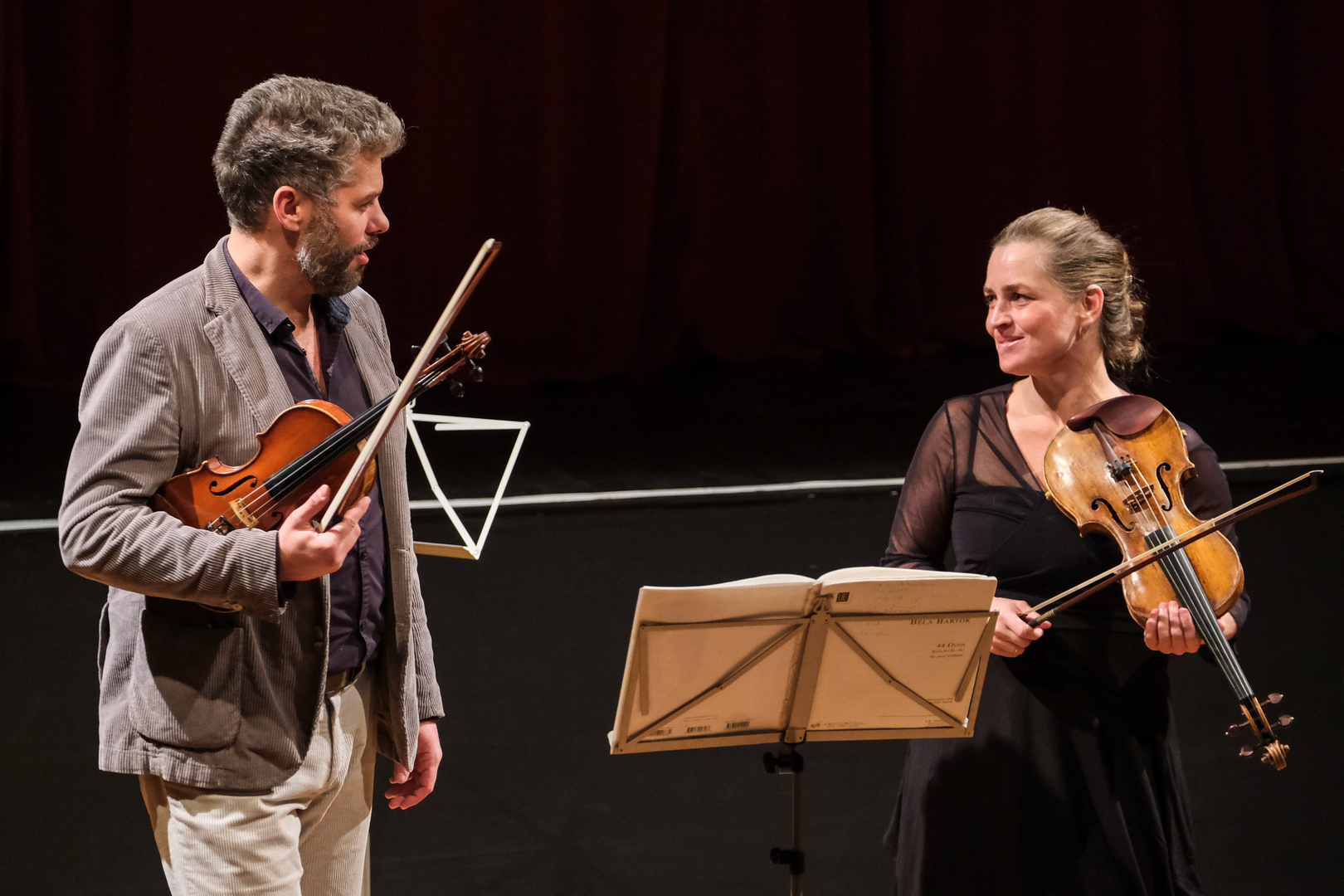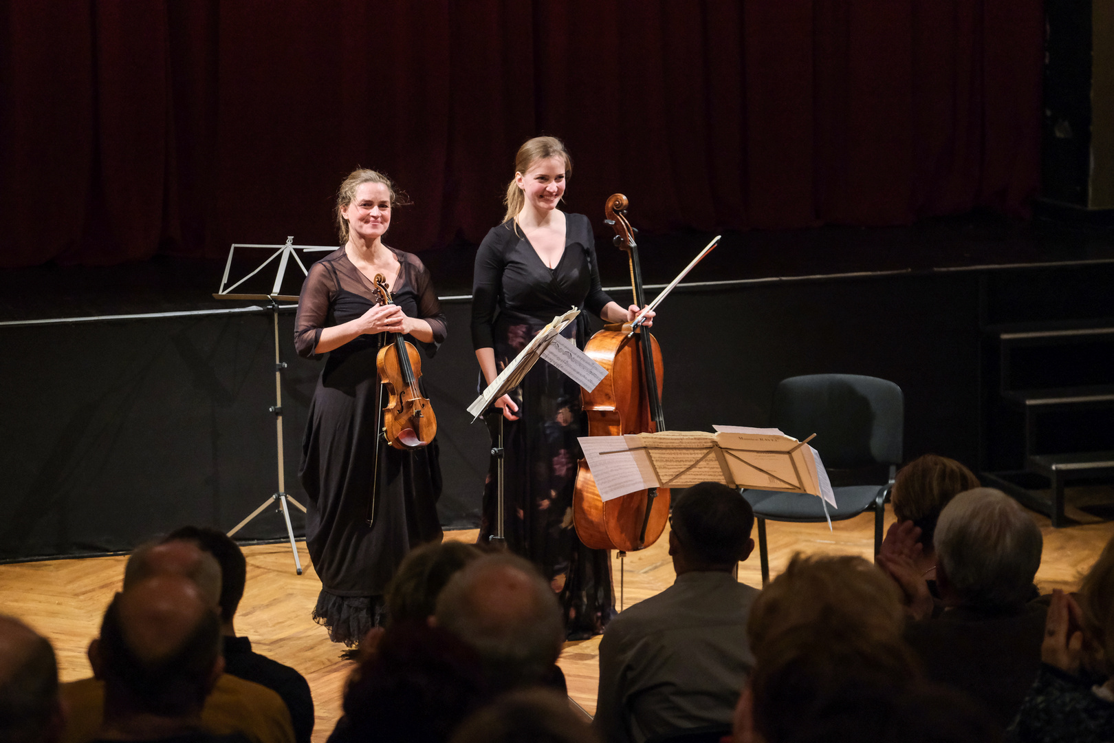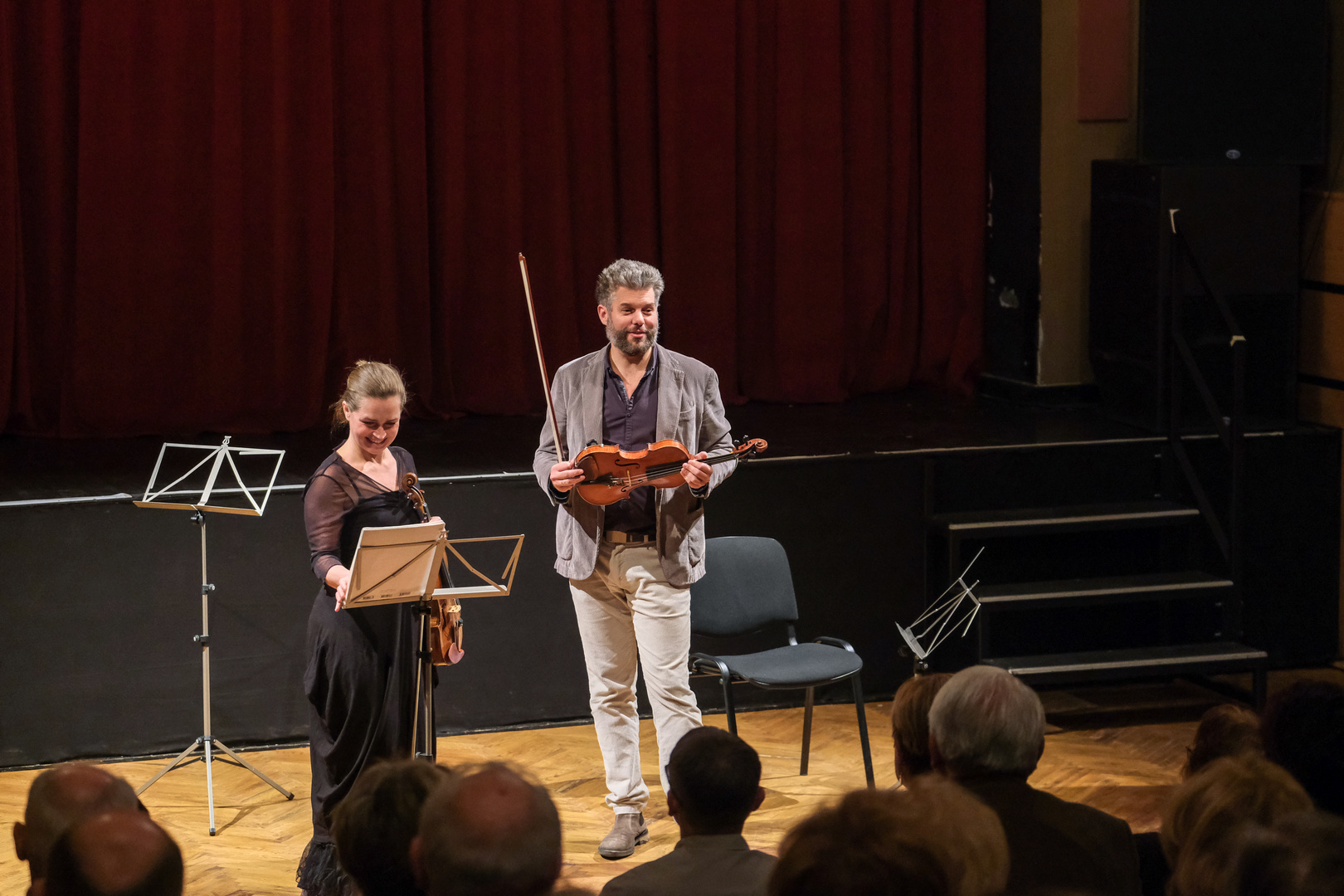 A meglepetést már az elején ellőtték, hiszen a Liszt Ferenc-díjas magyar hegedű- és brácsaművész Katalin mellé nem a húga, hanem Kelemen Barnabás Kossuth-díjas hegedűművész lépett, aki nem mellesleg a férje. Már 2009 óta játszanak együtt vonósnégyesben is (Kelemen-kvartett). Nem csupán elkísérte a hölgyeket, hanem örömzenészként segített a művek megszólaltatásában is. Az est tehát trióvá lényegült a közönség vastapsától kísérve. Különösen azért, mert Kelemen Barnabás, ahelyett, hogy a magyar államtól kölcsönkapott, 1742-ben készült Ex-Kovács Dénes Guarneri del Gesù hegedűjén játszott volna, ami a spontán csatlakozás okán otthon maradt, a gyulai Veres József kölcsönhegedűjén szólaltatta meg méltóképpen a darabokat. Amikor Dóra és Katalin ragadták meg a vonót, Barnabás a hátsó sorban húzta meg magát. Szerencsémre éppen mellettem, így érezhettem testközelből, ahogyan minden egyes taktust végigkísér helyéről egy nyughatatlan néző mozdulataival. Ez jelen esetben pont nem volt kellemetlen, sőt.
