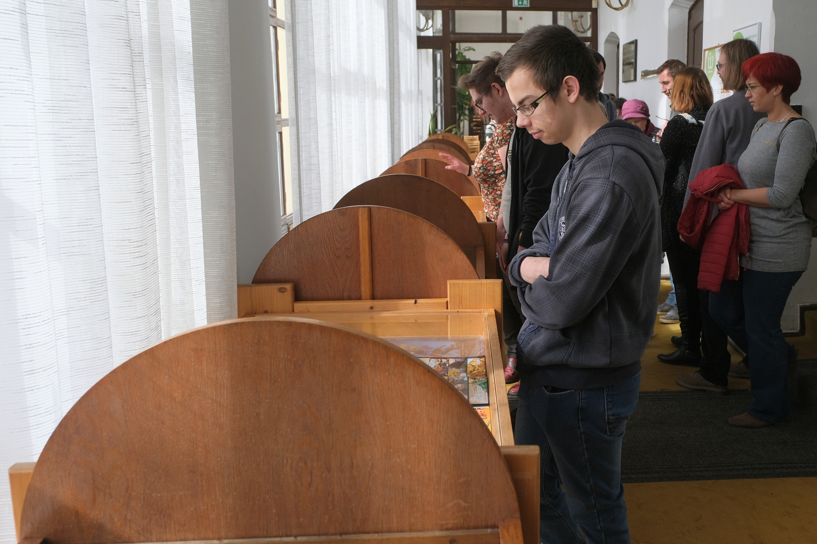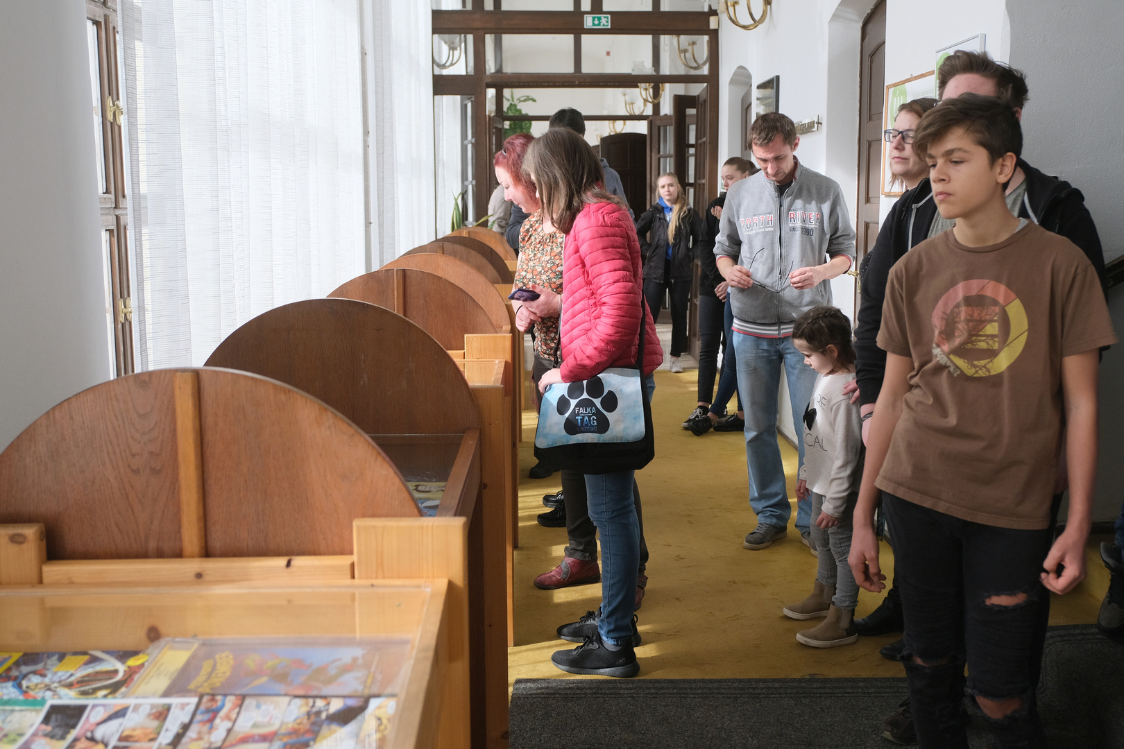 A tárlatról Szabó Miklós képregénygyűjtő beszélt az érdeklődőknek. Megtudtuk, hogy a vitrineket különféle témakörök szerint rendezték be, de gyakorlatilag mindegyikben megjelenik a múlt és a jelen, így a ’90-es évek füzetei mellett láthattunk mai kiadványokat is.