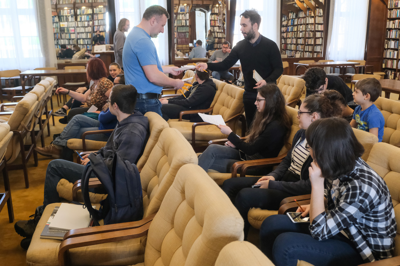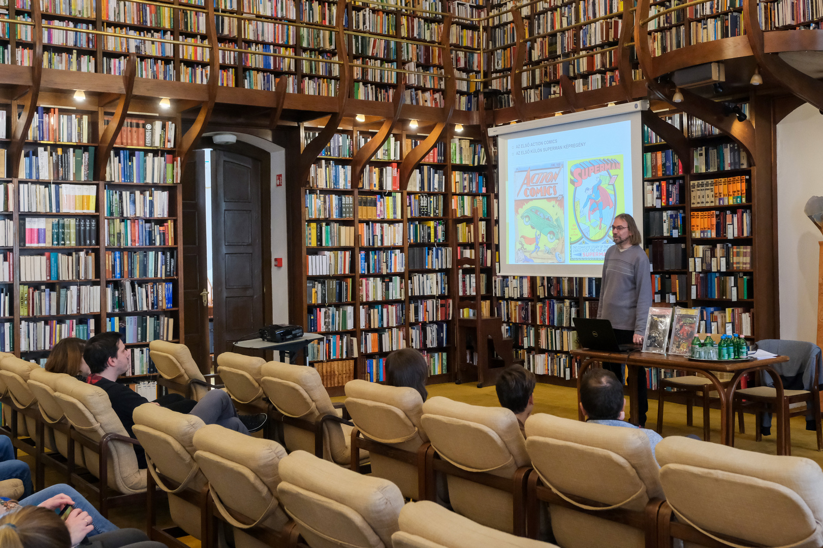 A kiállítás megnyitója után a Simonyi-olvasóteremben folytatódott a program, ahol először egy kvízjátékon vehettek részt a jelenlévők, a helyes válaszadók pedig értékes képregényekre csaphattak le.