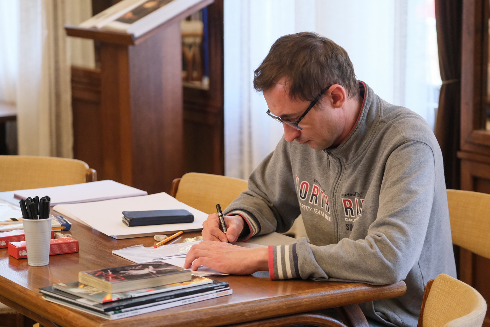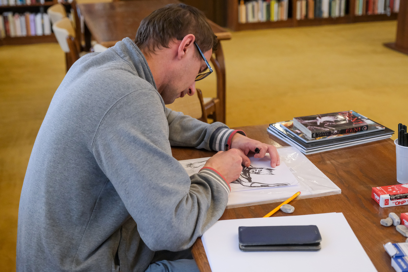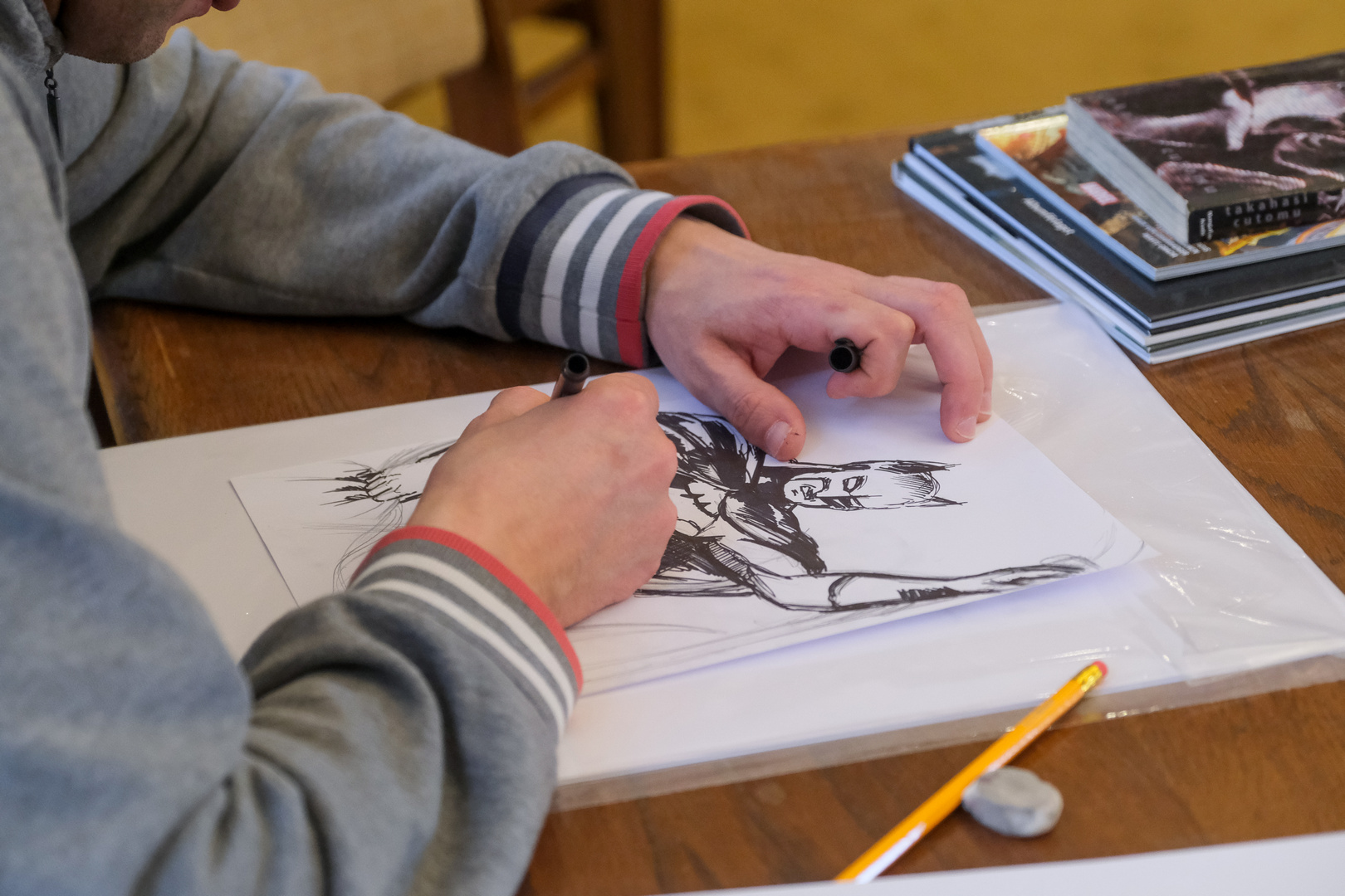 Az előadás után egy különleges workshopra invitálták a jelenlévőket, akiknek rajztudásukat kellett megcsillogtatniuk: a feladat Simonyi Imre portréjának megalkotása volt, lehetőség szerint különféle képregényes stílusokban.