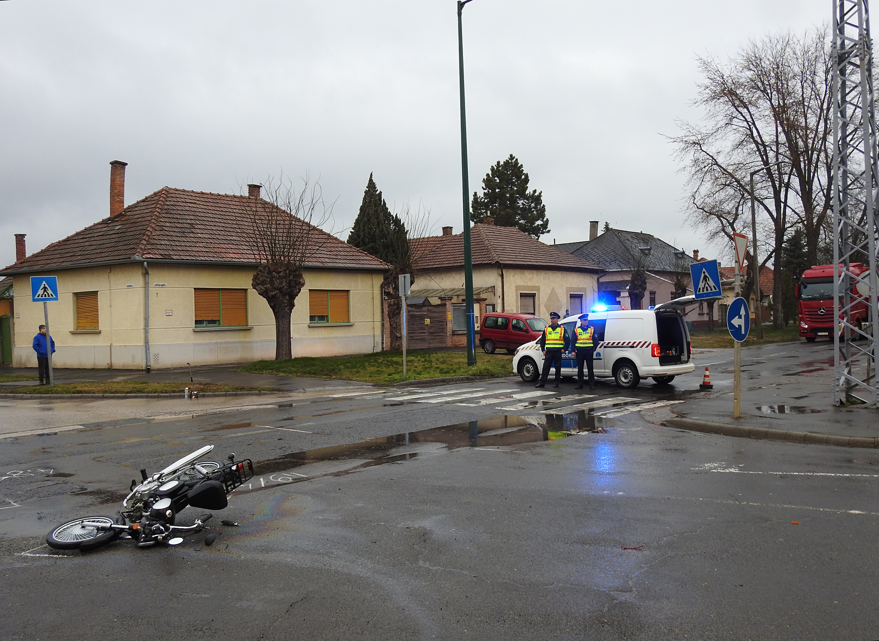 Frissítés: a rendőrségi portál március 4-én közölte, a személyautó vezetője nem adott elsőbbséget a segédmotor-kerékpárral közlekedő férfinek, akivel összeütköztek. A police.hu azt írta, a mentők a férfit súlyos sérüléssel vitték kórházba.