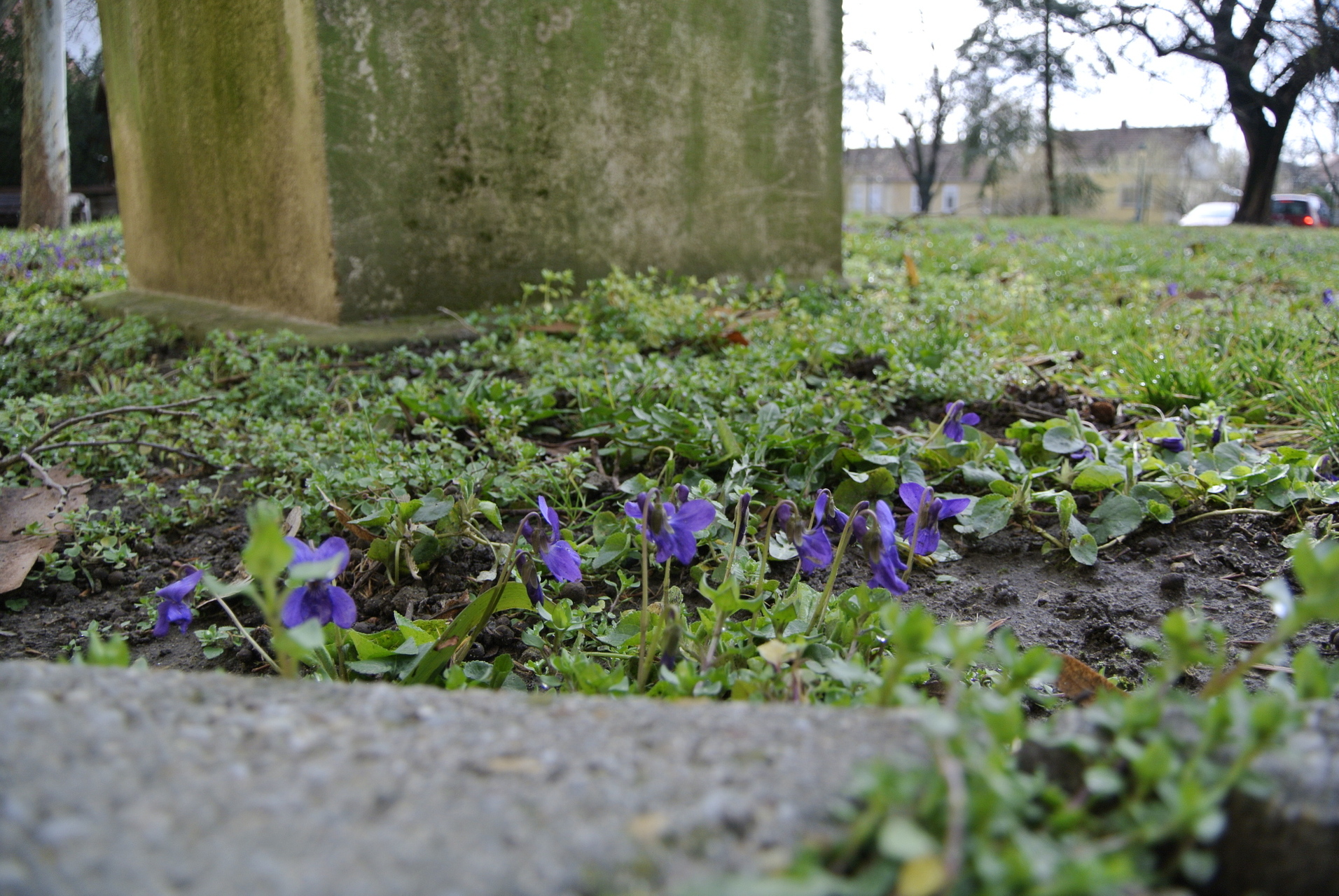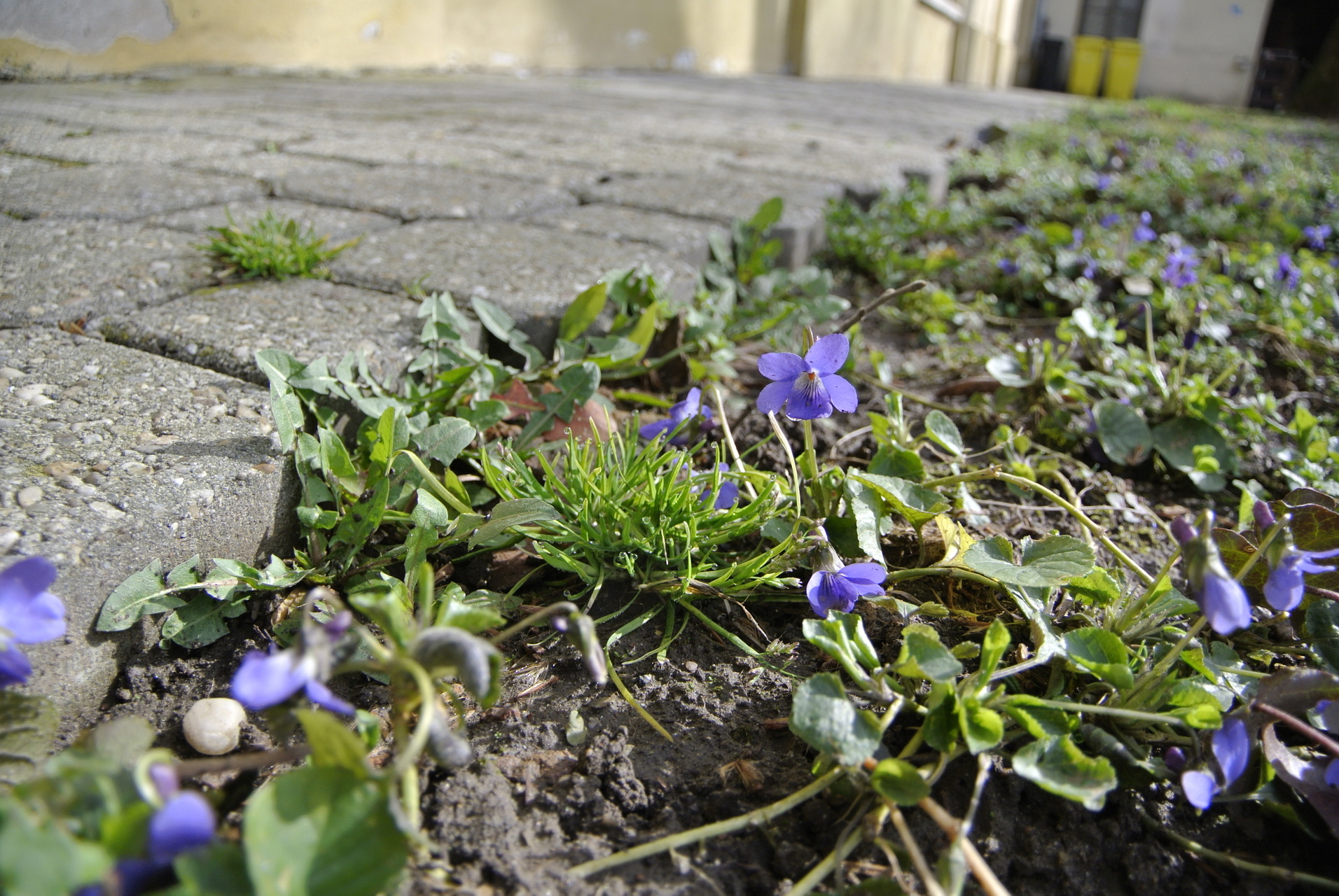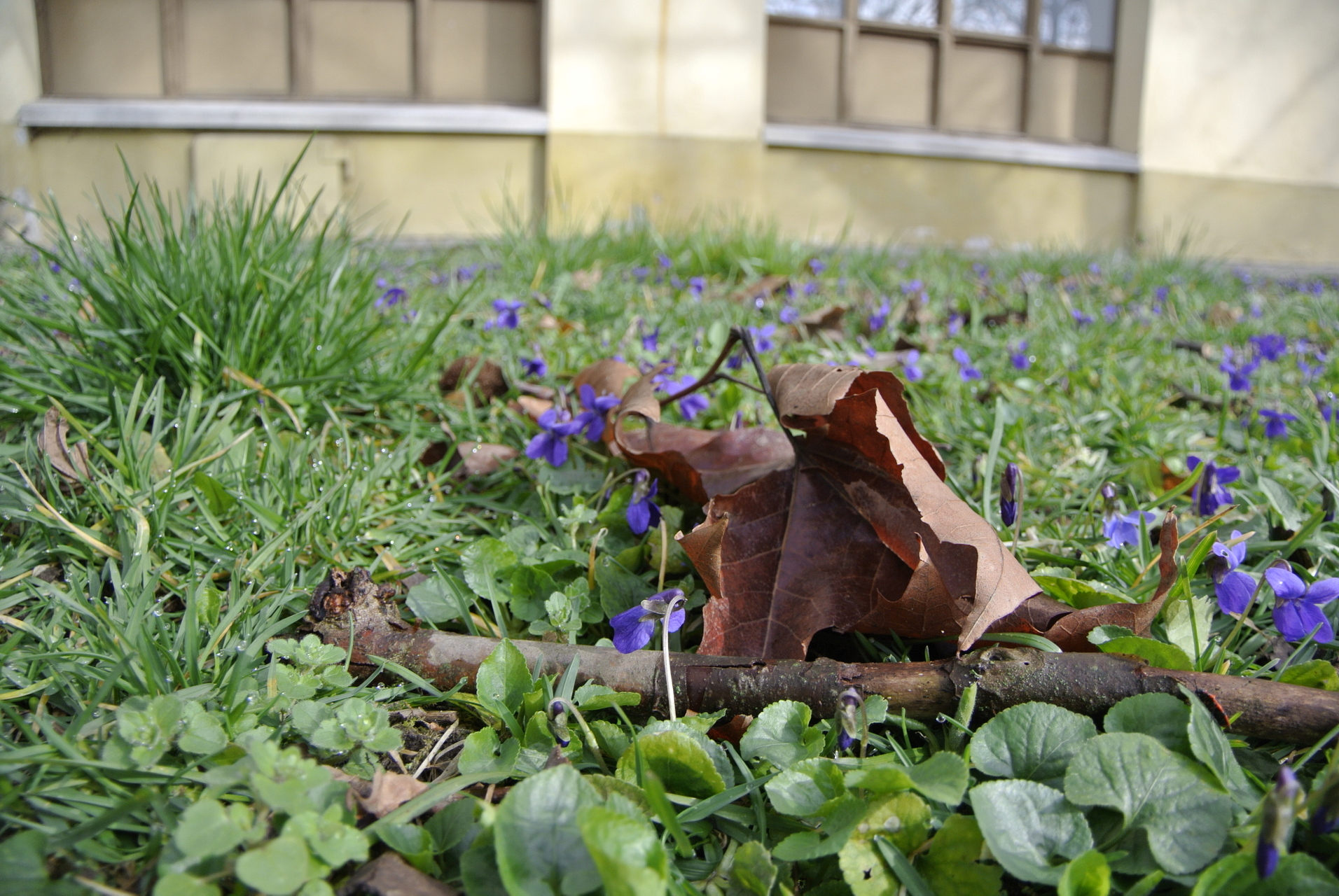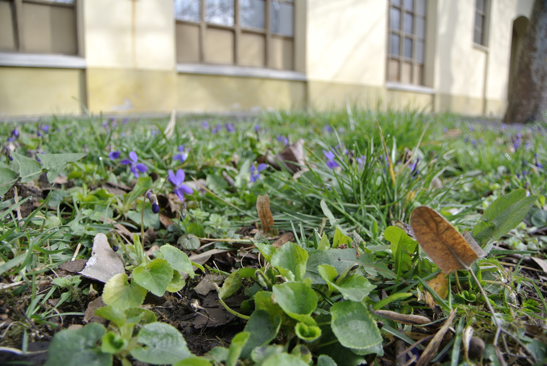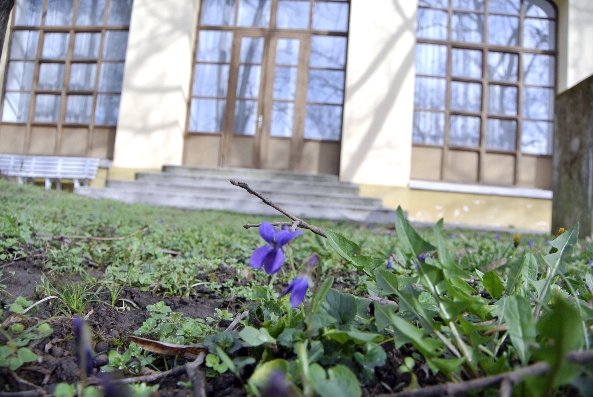 A városi könyvtár udvarán leltünk rá a tavasz hírnökeire