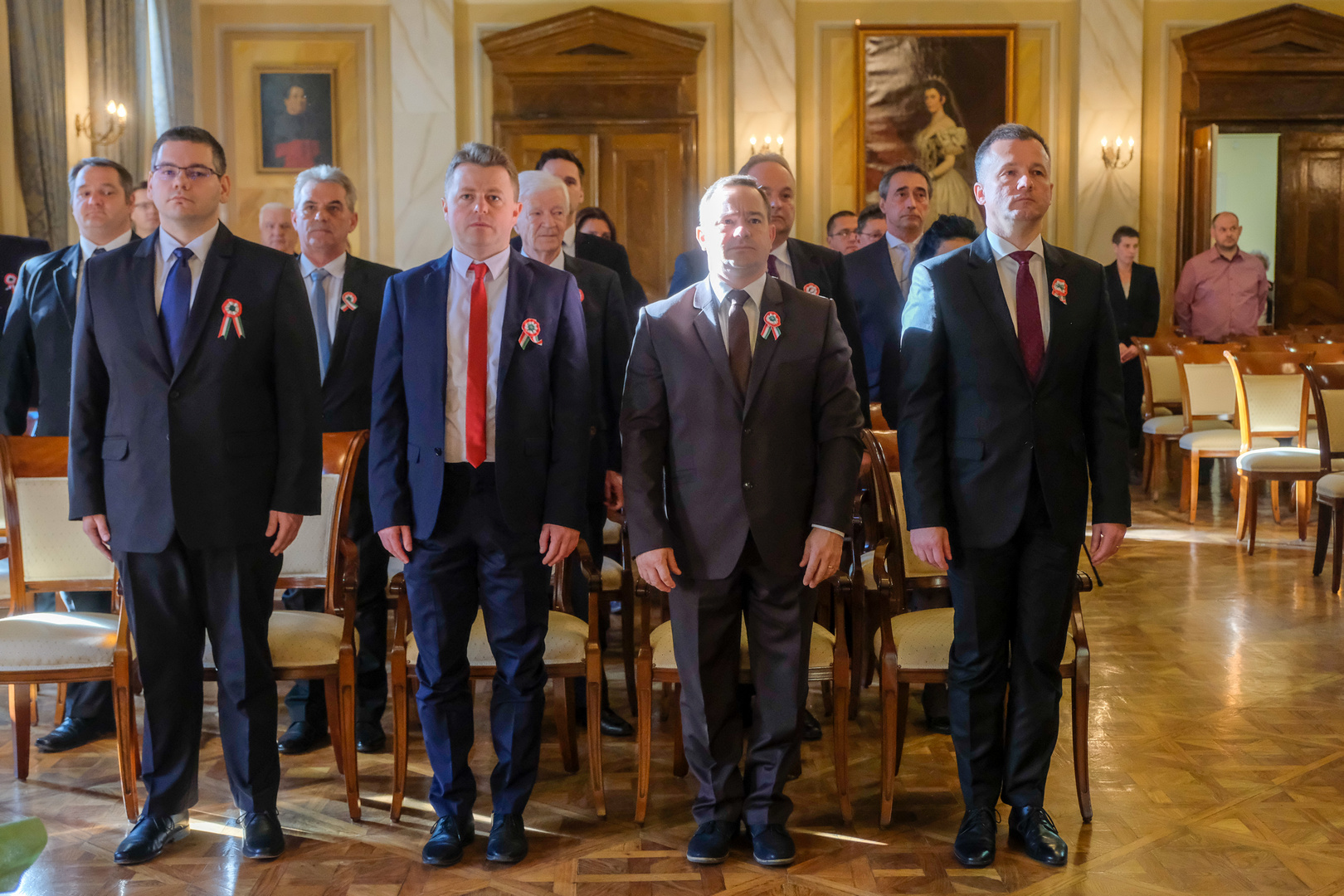 A díszteremben tartott rendezvényen elsőként Görgényi Ernő köszöntötte a résztvevőket, aki beszédében felelevenítette a kezdeteket, amelyekben gyökereznek a megemlékezések, függetlenül attól, hogy milyen körülmények között emlékeztek az 1848/49-es forradalomra és szabadságharcra.