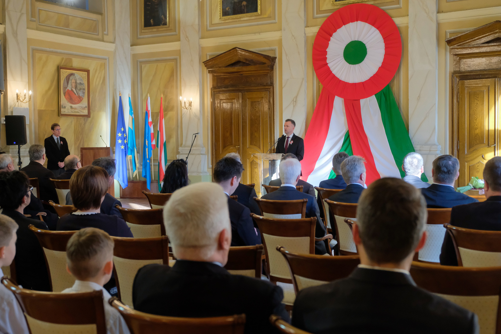 A polgármester köszöntője után Szabó Zoltán szavalta el Gyulai Pál Hazám című versét, majd következett a kitüntetések átadása.