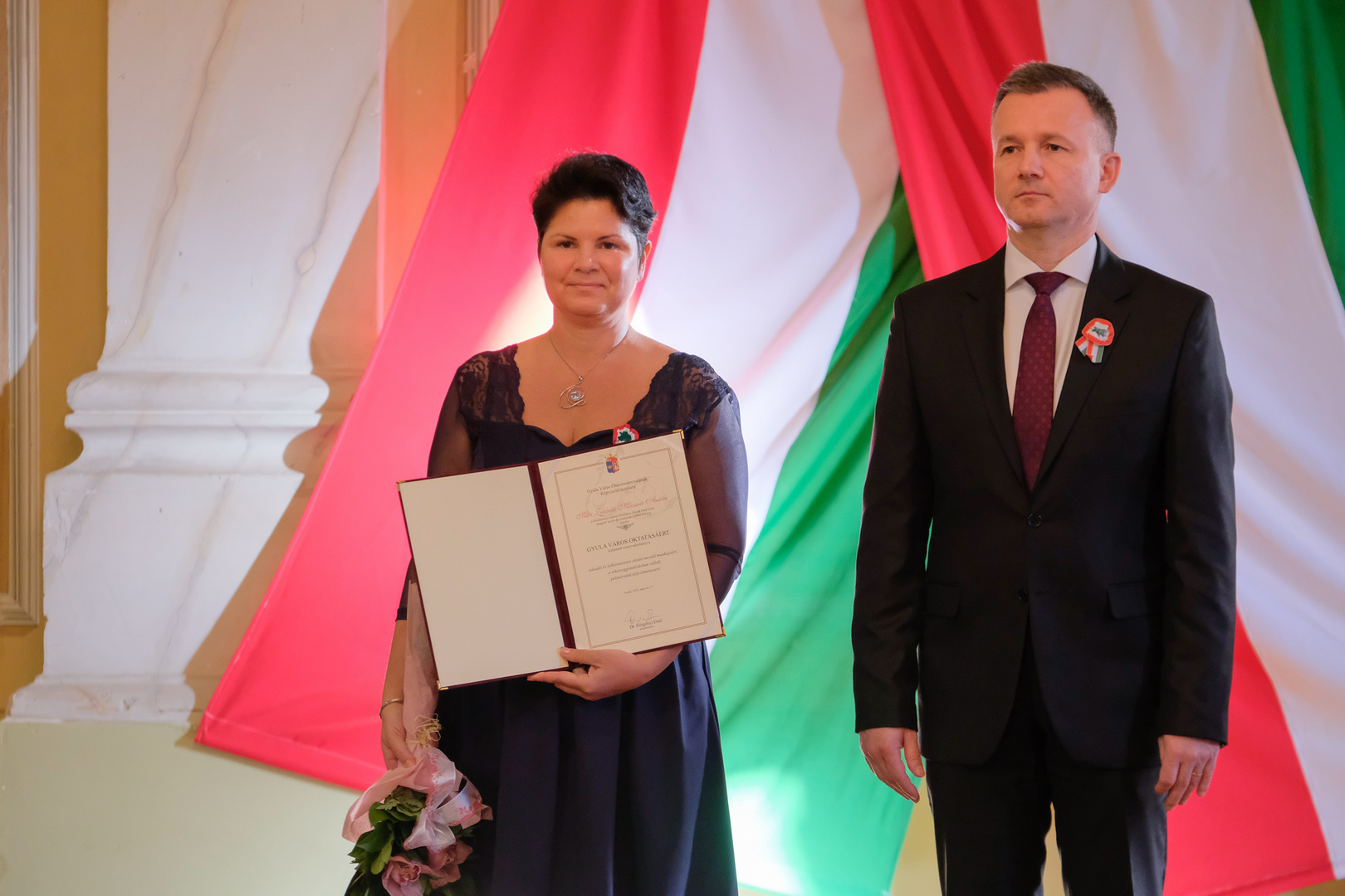Gyula Város Szolgálatáért díjat kapott Becseiné Lock Gabriella, Gyula Város Egyesített Óvodájának intézményvezetője.