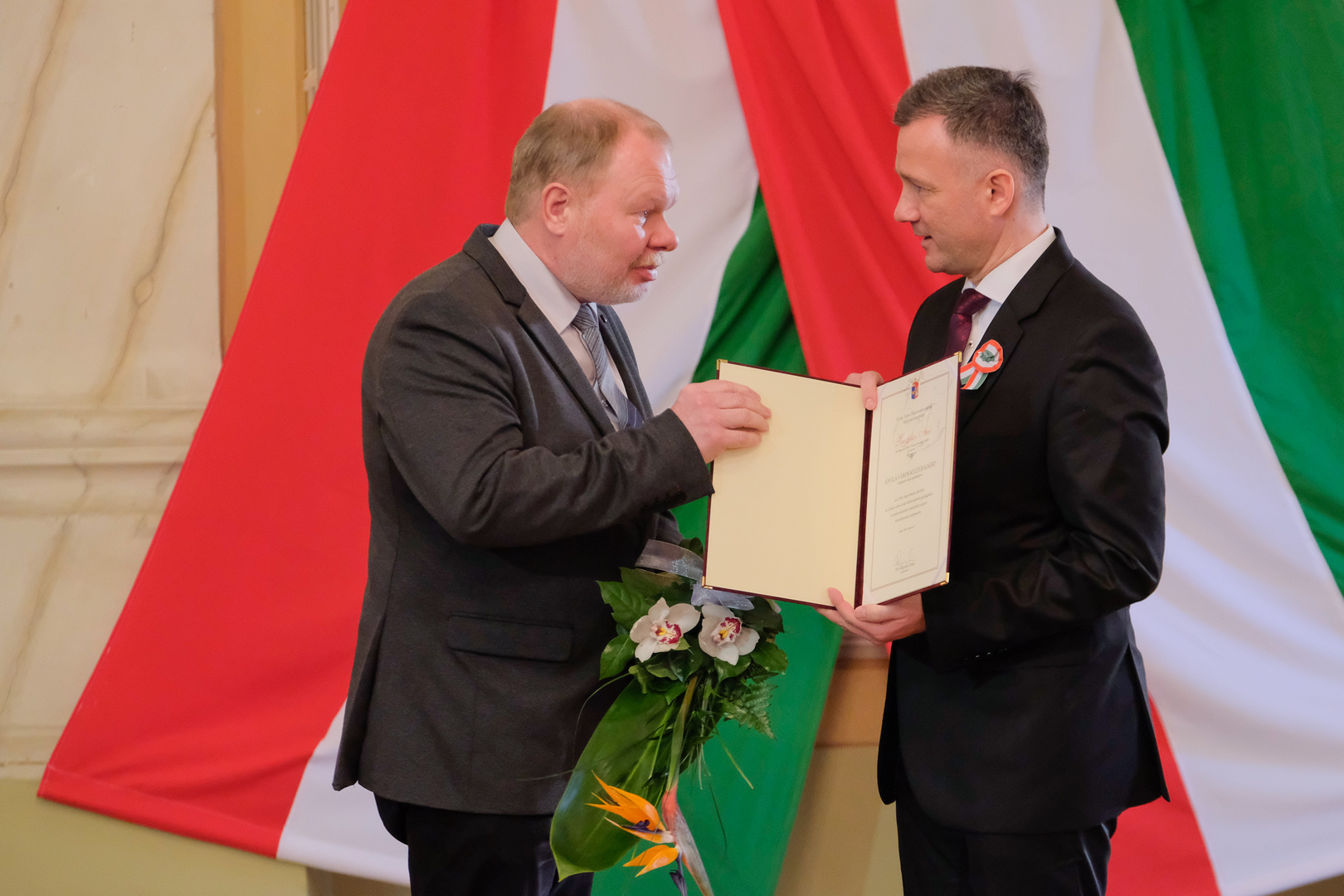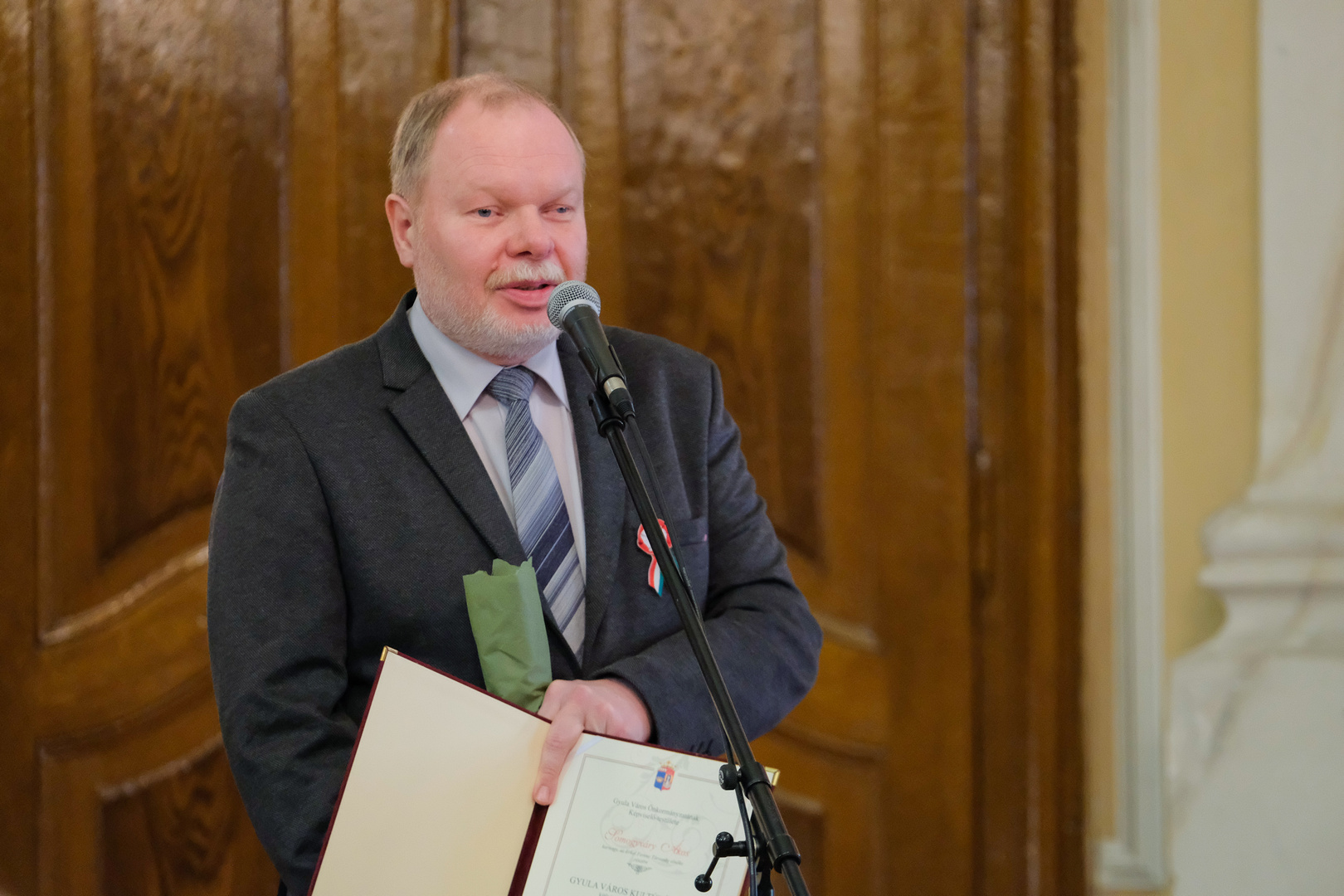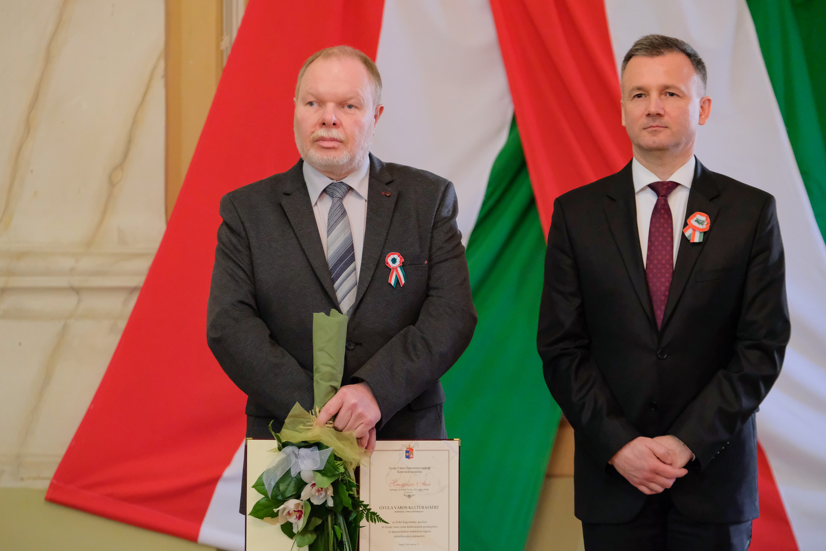 Gyula Város Kultúrájáért kitüntetésben részesült Somogyvári Ákos karnagy, az Erkel Ferenc Társaság elnöke.