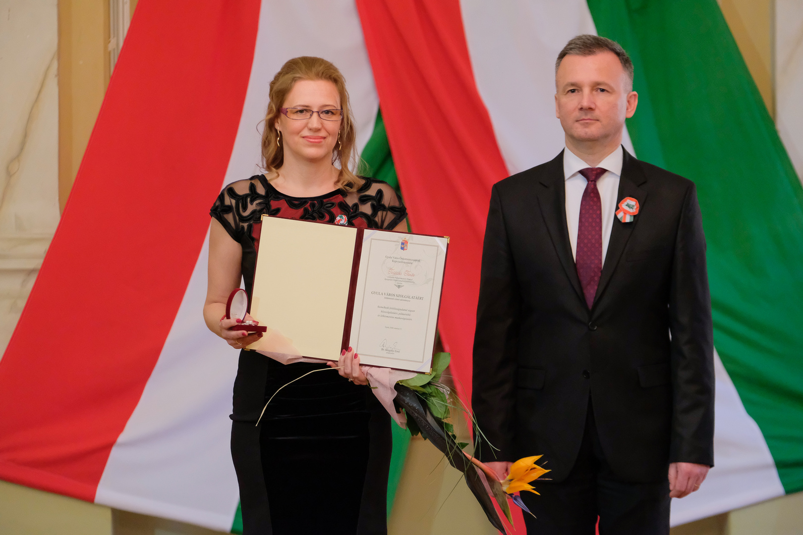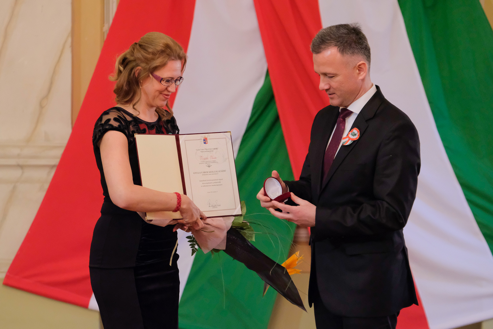 Ugyancsak Gyula Város Szolgálatáért címet vehetett át Horváth Pálné Daradics Eszter, az Erkel Ferenc Kulturális Nonprofit Kft. munkatársa.