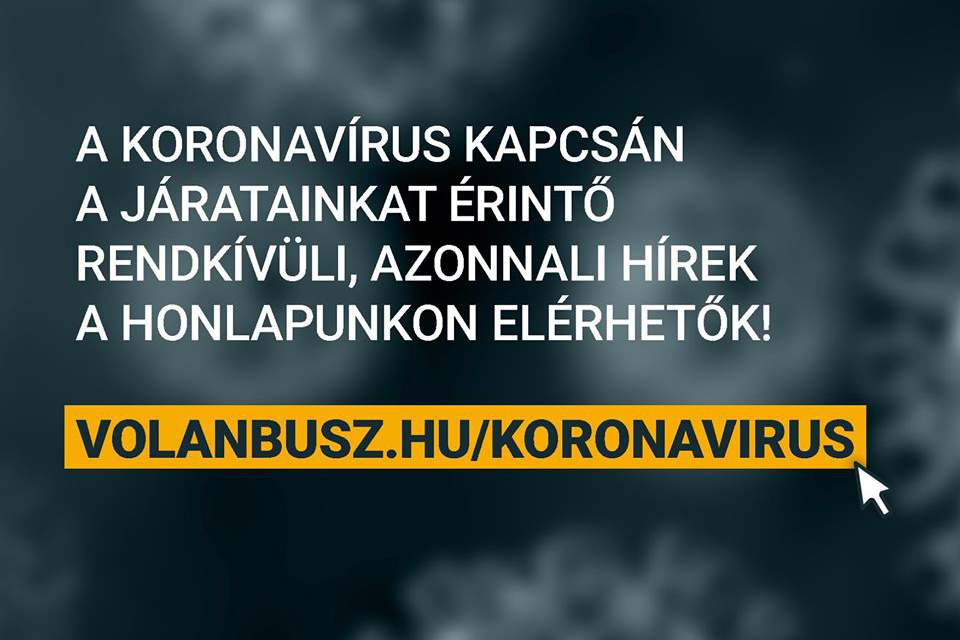 Az országos veszélyhelyzettel összefüggő, a társaság autóbuszjáratait, menetrendjét, jegy- és bérletváltási szabályait érintő változásokról az utasok a volanbusz.hu/koronavirus oldalon tájékozódhatnak.