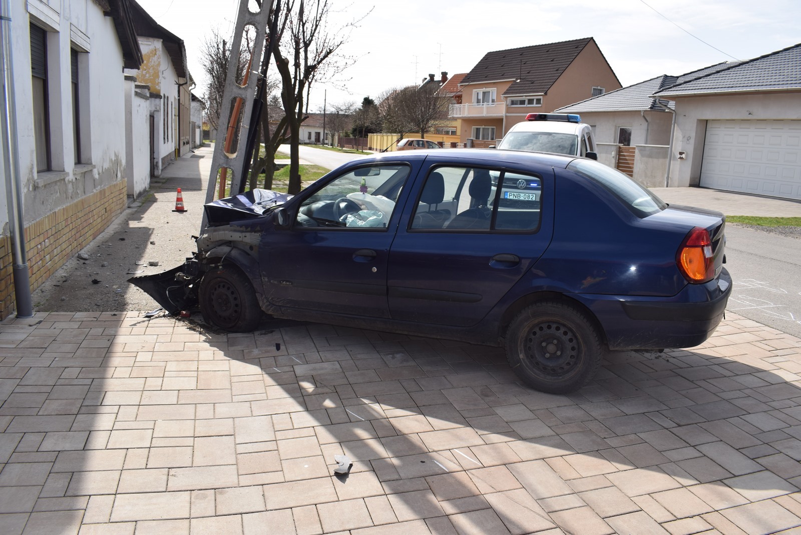 Egy személygépkocsi egy kapubejáróban álló autónak, majd egy villanyoszlopnak ütközött március 22-én délelőtt Orosházán, a Thököly utcában. A balesetben a jármű vezetője és utasa nyolc napon belül gyógyuló sérülést szenvedett.