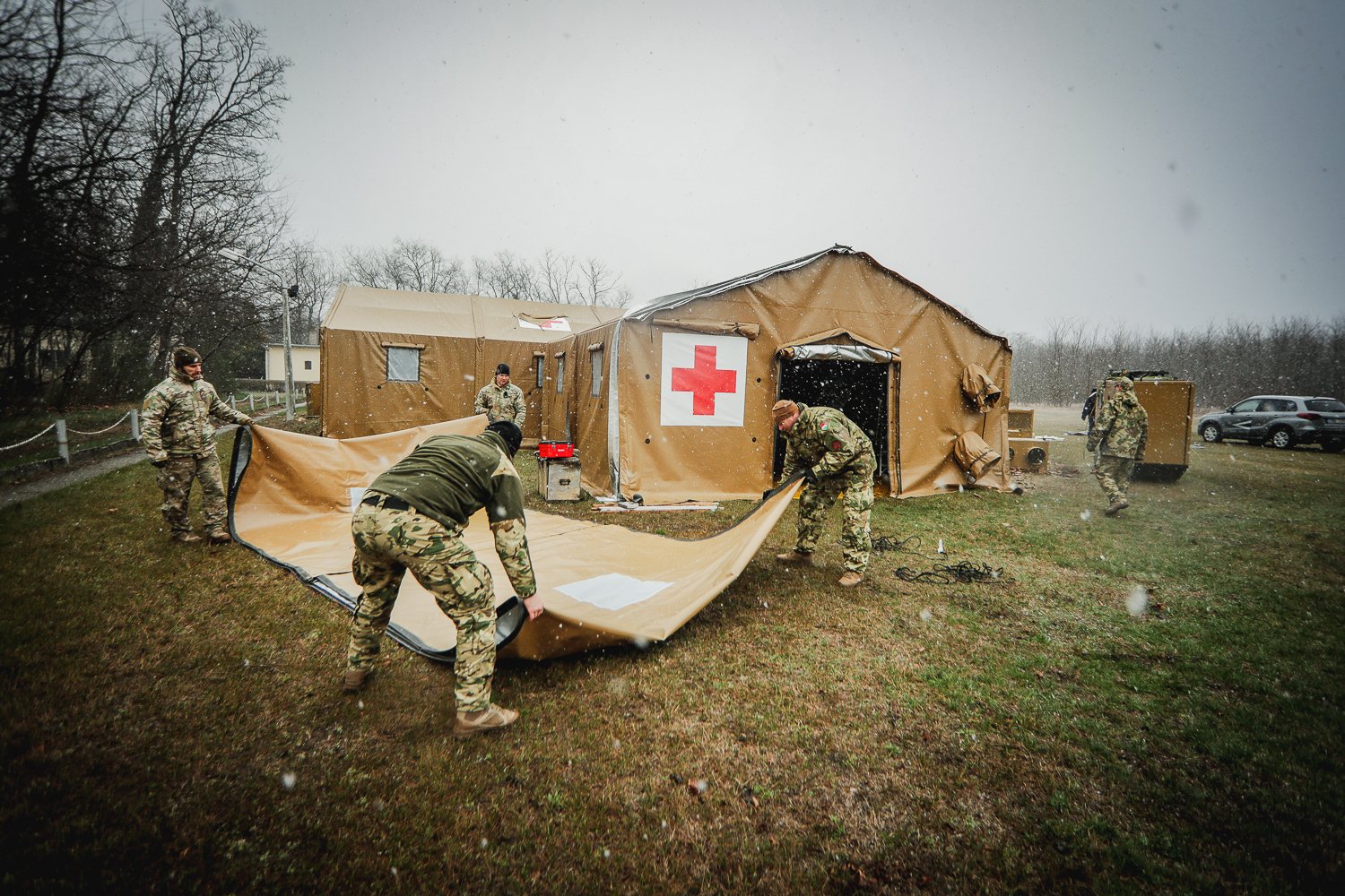 A honvedelem.hu cikkében azt írták: a járványügyi veszélyhelyzetre való tekintettel hétfőn és kedden a Magyar Honvédség Egészségügyi Központ szakállománya debreceni, hódmezővásárhelyi és szolnoki katonákkal kiegészülve – a kórház megsegítése céljából – telepítette a Role-1 típusú tábori sátorrendszert.