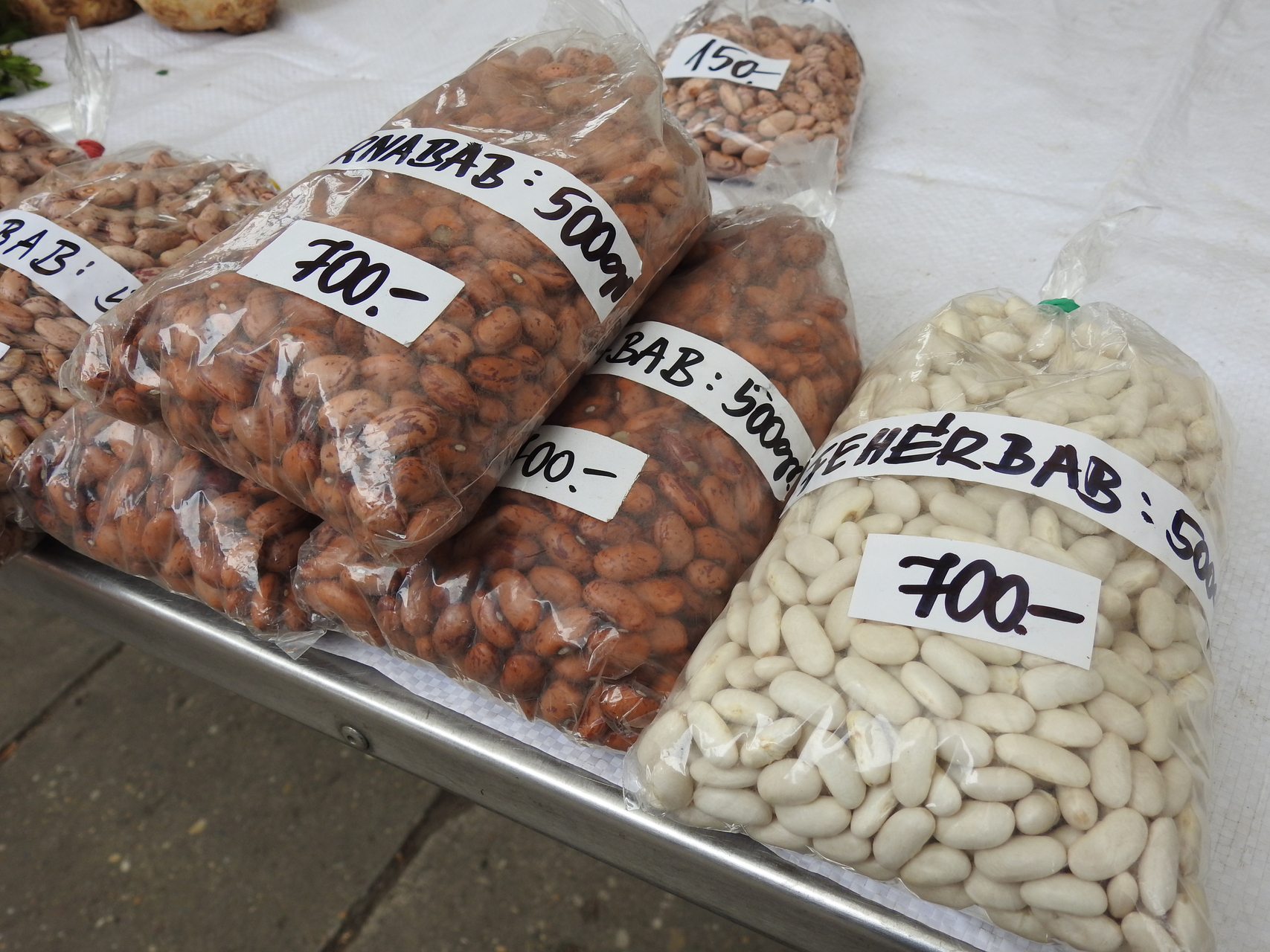 Ottjártunkkor lencsét, gyöngybabot, fehérbabot, barnababot és fürjbabot lehetett kapni félkilós kiszerelésben, de az árus kisebb, 10 dekagrammos csomagokat is szokott készíteni.
