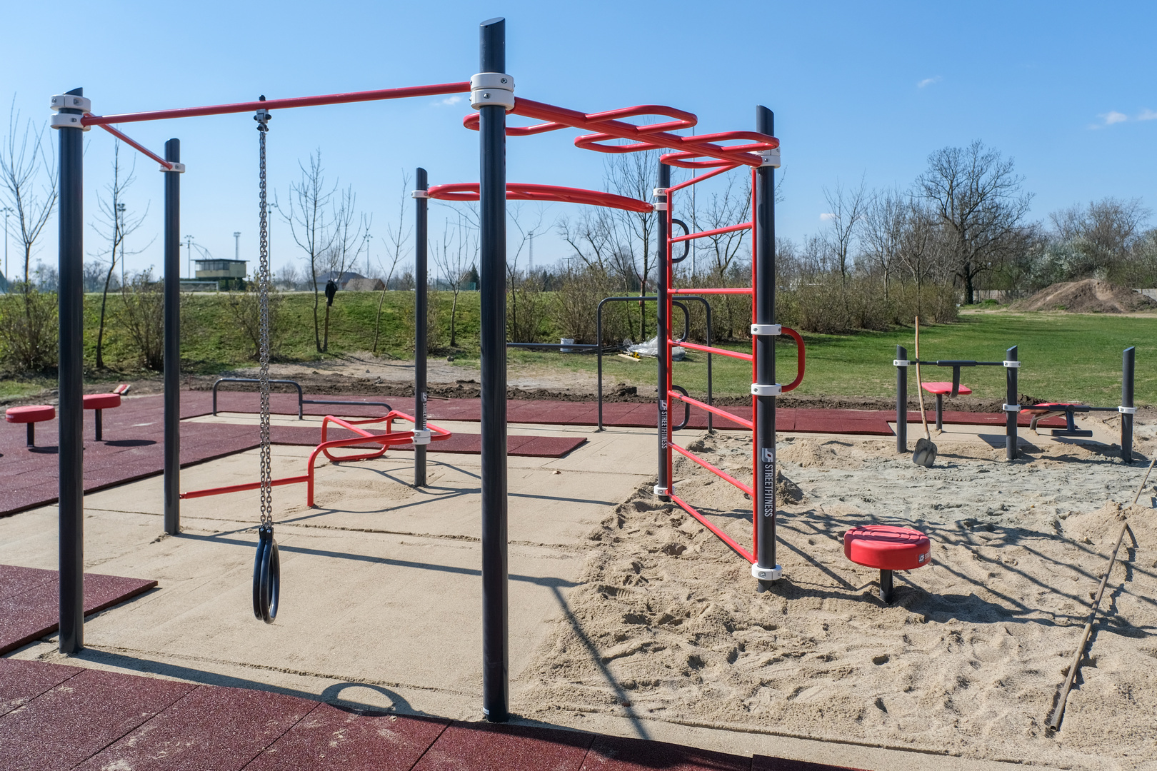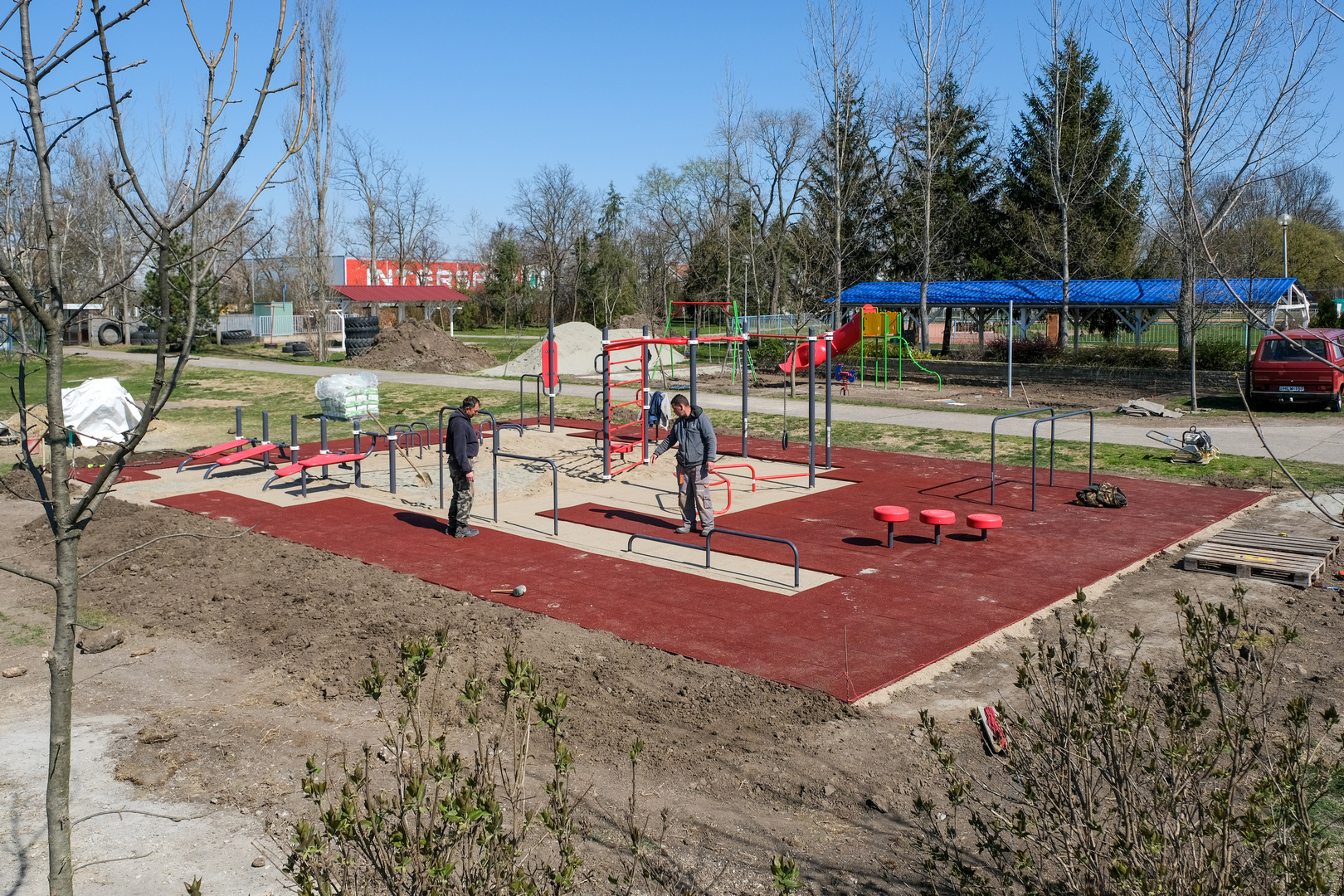 A szabadtéri fitneszparkban bordásfal, vádli erősítő és függeszkedő állvány is lesz, a játszótéren pedig lengőhinta és piramis is épül a gyermekeknek.