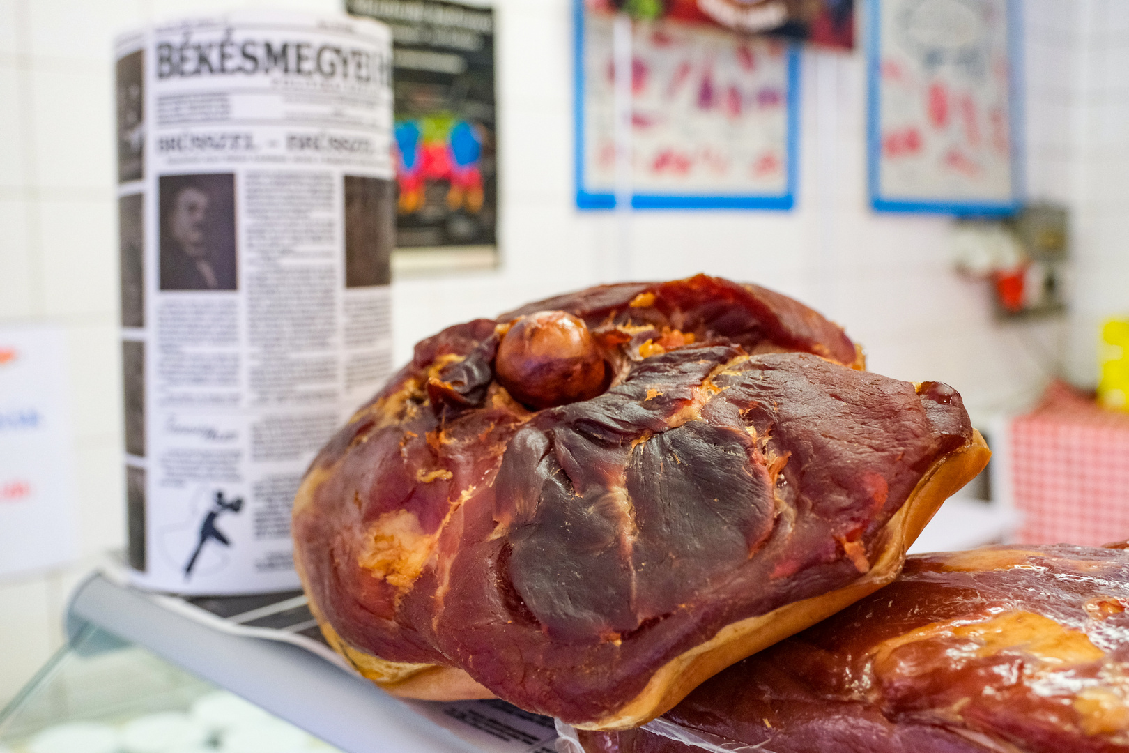 – Először a sóba kerül a sonka, majd miután lemostuk róla a sót, füstöljük, és több héten keresztül érleljük – ismertette a húsáru elkészítési módját.