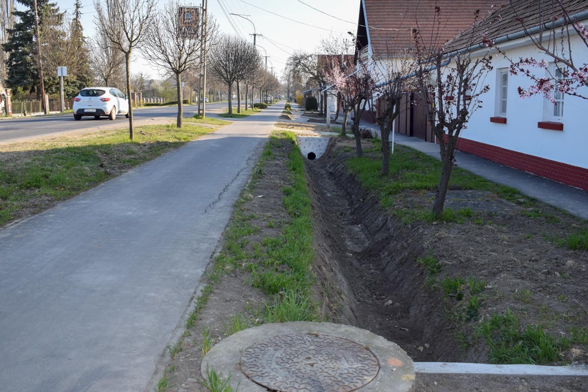 Mint mondta, az út páros oldalán – a Hunyadi és Kazinczy utca között – 300 méter nyílt árok épült, a kapubejárókban beton átereszekkel. A beruházás költsége több mint 9,6 millió forint volt.