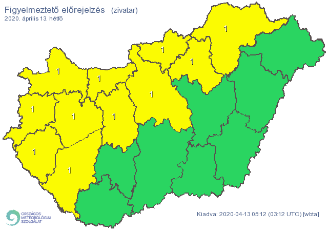 Délutántól egy hidegfront hatására az ország északi felén a záporok mellett helyenként zivatarok is kialakulhatnak. Erre legnagyobb esély az Észak- és Közép-Dunántúlon, valamint a főváros tágabb környezetében van, de nagyobb bizonytalanság mellett késő délután, este ennél délebbre, valamint északkeleten is előfordulhat villámtevékenység.