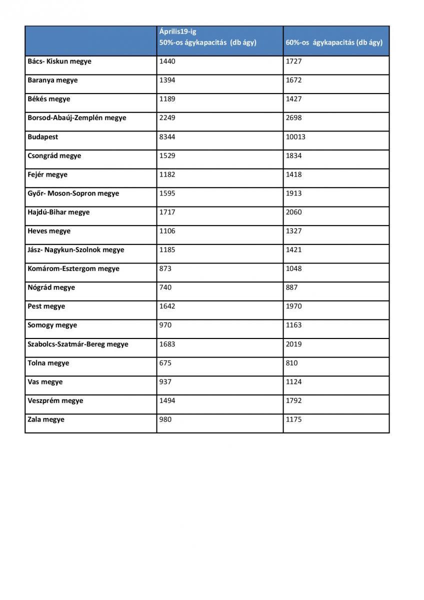Az oldalon közzétett adatok szerint Békés megyében az első ütemben 1189, a másodikban 1427 ágyat kell biztosítani a koronavírusos betegek ellátására.