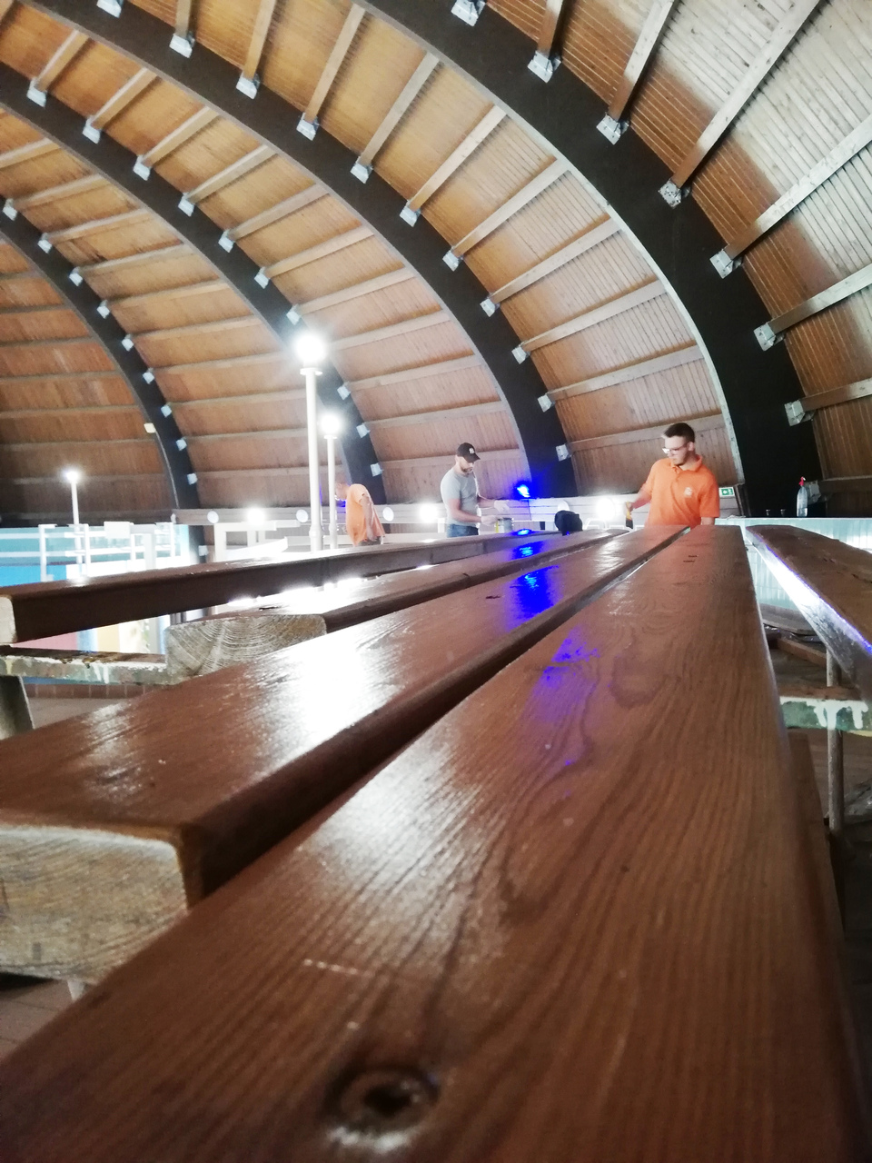 Kun Miklós elmondta, hogy a héten elindul az 50 méteres úszómedence fóliázása, valamint szigetelik a lefolyókat is a medencében.