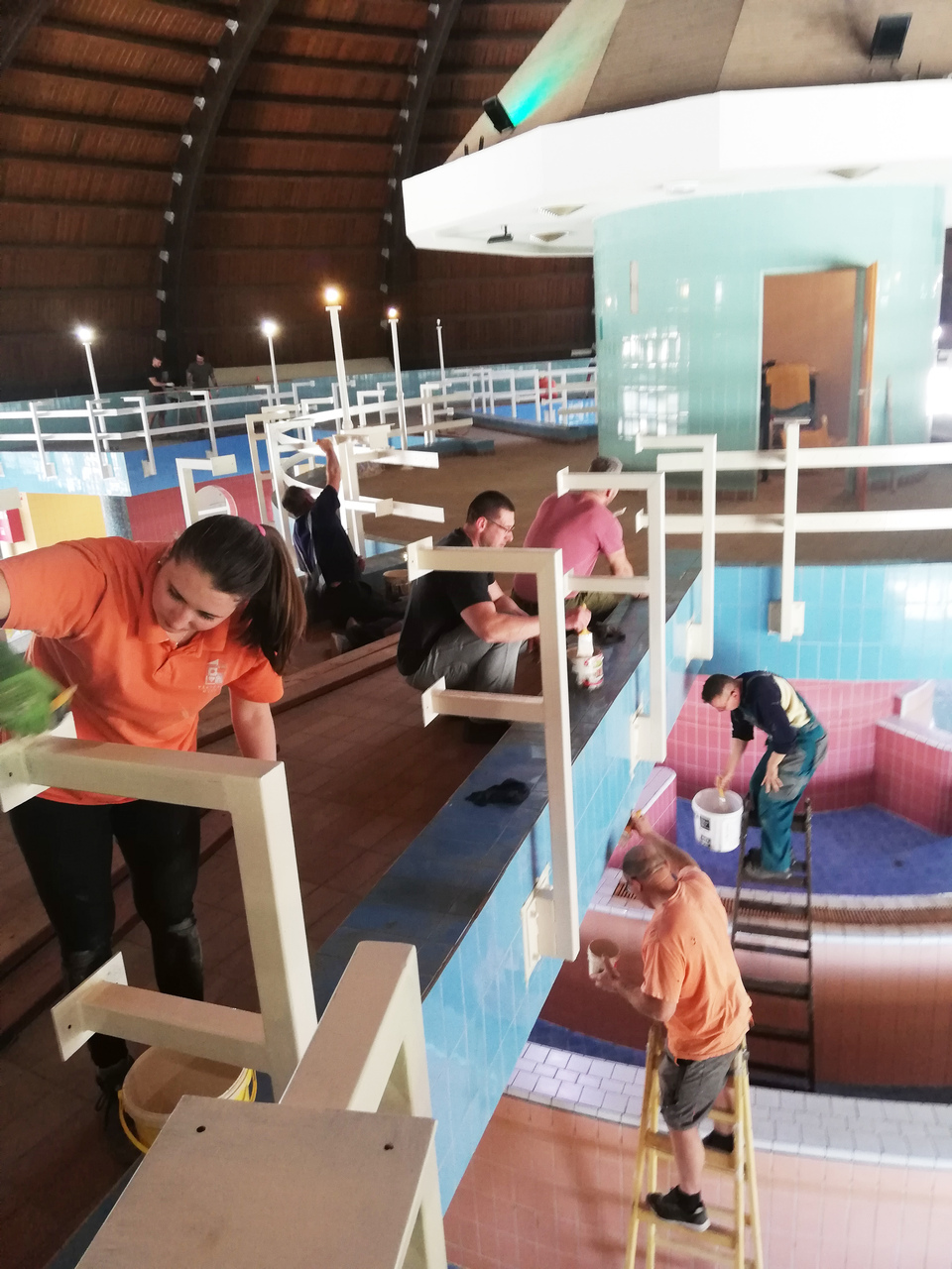 Az ügyvezető elmondta azt is, hogy a strandszolgálat folyamatosan dolgozik a nyári átálláson, emellett besegítenek a karbantartói munkálatokba is – többek között festés, csiszolás, fugázás –, a kertészeti munkákat pedig a gyógyászat dolgozói és a pénztárosok végzik el.