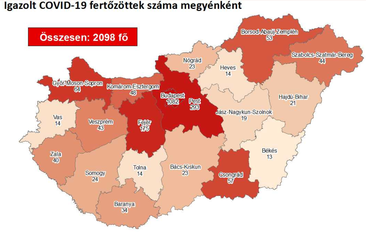 Békés megyében (13) van a legkevesebb fertőzött Magyarországon.