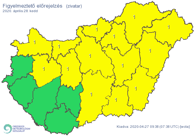 Átmeneti szünet után kedd délután várhatóan a Sopron–Debrecen vonal széles sávjában alakulhat ki néhol zivatar. Szerdán az egész ország területén előfordulhat zivatar. A zivatarokat 50–70 km/h-s széllökések, nagyobb mennyiségű (15–25 mm) csapadék, esetleg kisebb szemű (< 1 cm) jégeső kísérhetik – írja az Országos Meteorológiai Szolgálat.